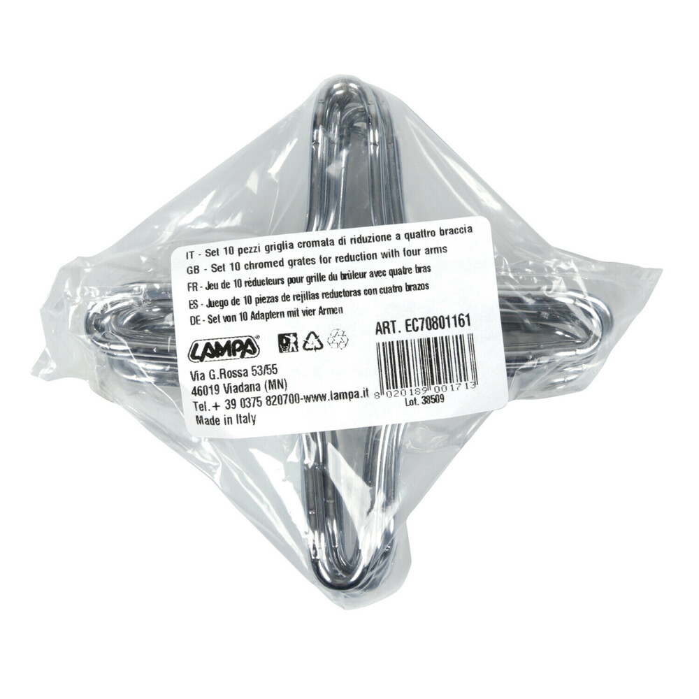 ΣΧΑΡΑ ΓΙΑ ΚΑΜΙΝΕΤΟ ΧΡΩΜΙΟΥ ΜΕ 4 ΜΠΡΑΤΣΑ LAMPA - 10 TEM. Σχάρα για καμνέτο χρωμίου με 4 μπράτσα, από την εταιρεία LAMPA, ιταλικής προέλευσης. Συσκευασία 10 τεμαχίων