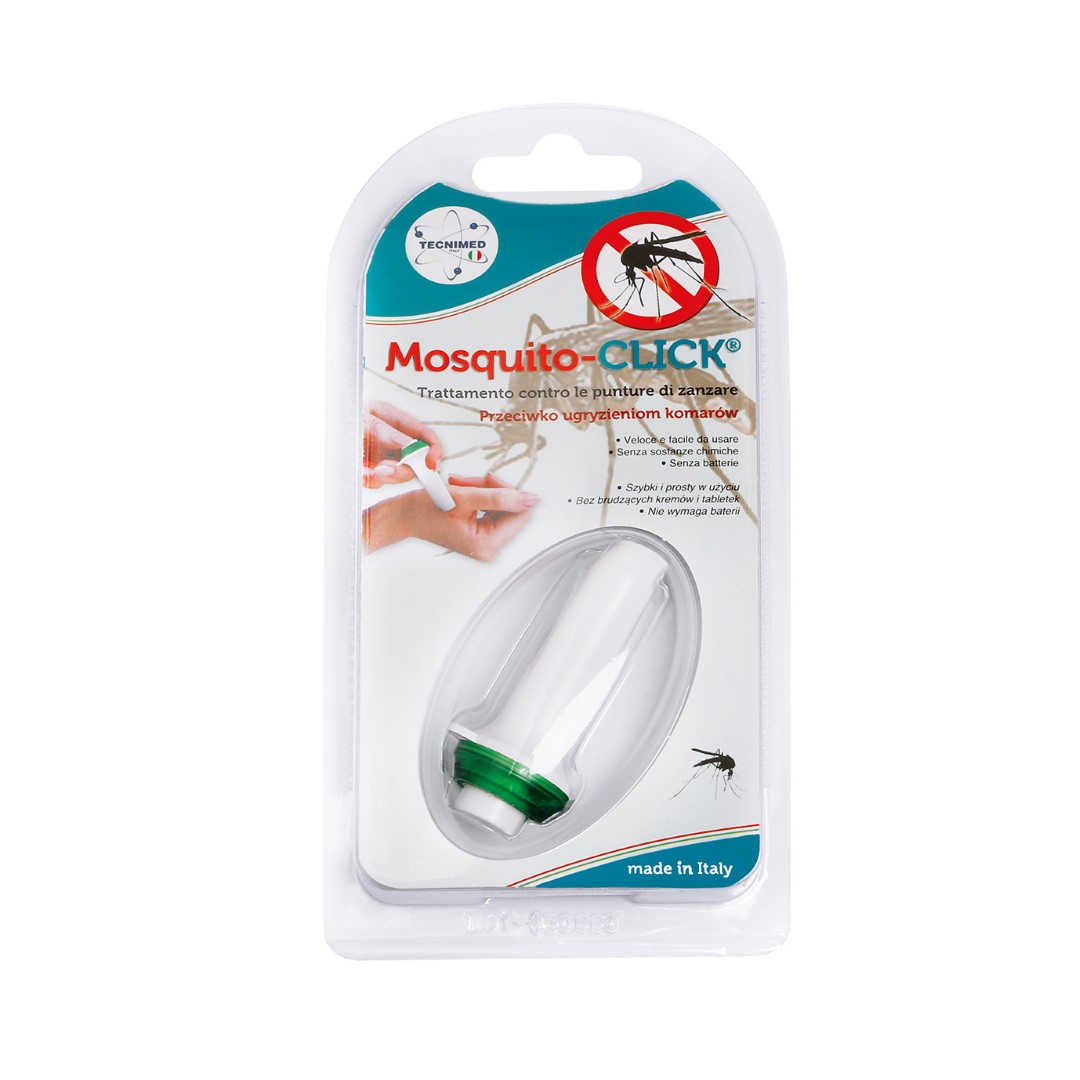 After bite καταπραϋντική συσκευή χειρός MOSQUITO-CLICK για ανακούφιση από τα τσιμπήματα των κουνουπιών τους καλοκαιρινούς μήνες. Πατενταρισμένο προϊόν, ιταλικής κατασκευής και προέλευσης, το οποίο λειτουργεί με πιεζοηλεκτρισμό (ιδιότητα κάποιων υλικών να παράγουν ηλεκτρική τάση, όταν δέχονται κάποια μηχανική τάση/πίεση ή ταλάντωση). Μόλις ο στατικός ηλεκτρισμός εφαρμοστεί επάνω στο τσίμπημα, το ελάχιστο ηλεκτρικό φορτίο μειώνει τον κνησμό και τη τάση πρηξίματος που δημιουργείται, καθώς επίσης αποτρέπει την πιθανότητα μόλυνσης στη γύρω περιοχή.