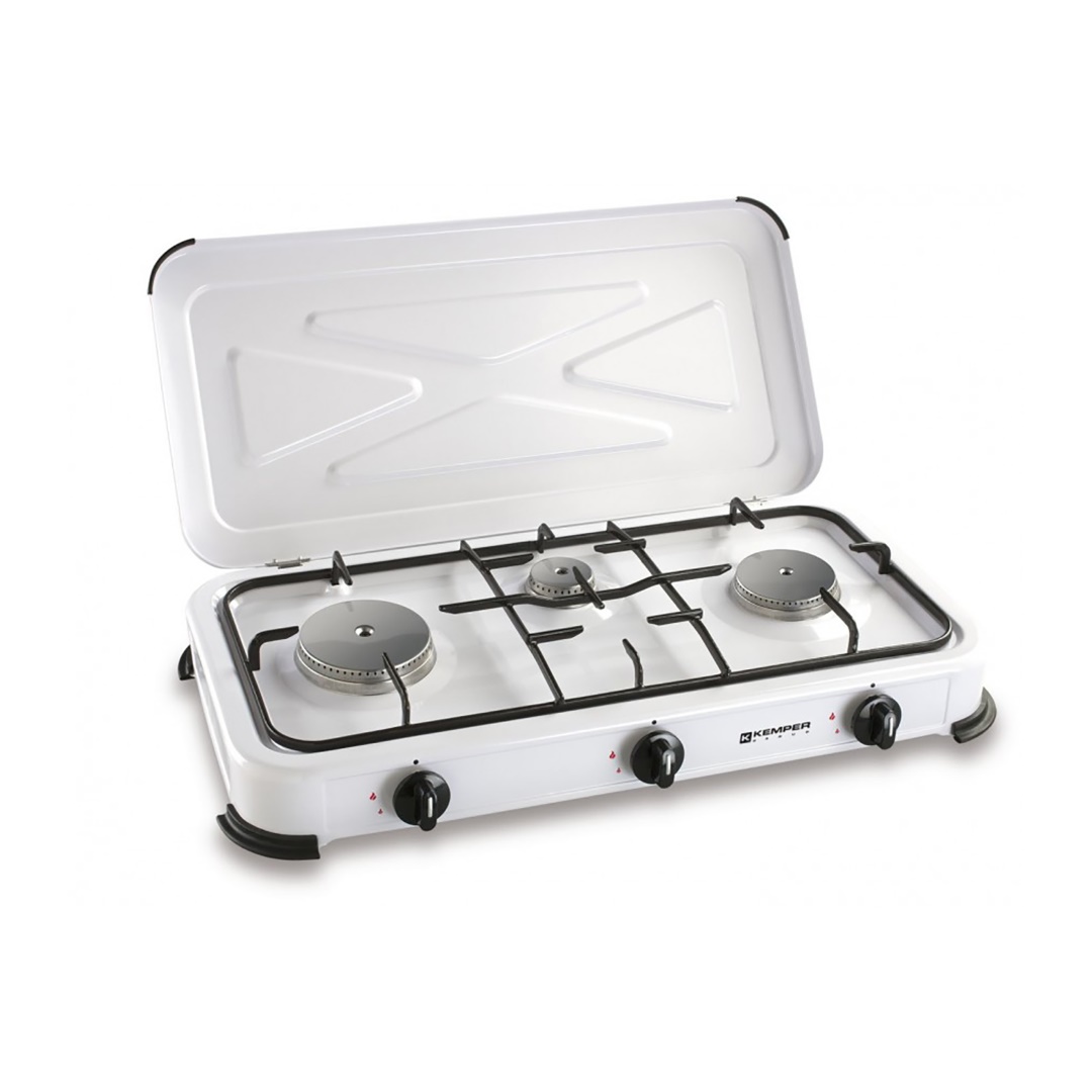 ΕΣΤΙΑ ΥΓΡΑΕΡΙΟΥ ΜΕ ΚΑΠΑΚΙ ΤΡΙΠΛΗ ΕΠΙΤΡΑΠΕΖΙΑ ΜΕ ΣΧΑΡΑ 1,4kw-1,2 kw-0,85 kw/ 580x90x330cm KEMPER Επιτραπέζια εστία μαγειρέματος υγραερίου με 3 ανοξείδωτους καυστήρες υψηλής ισχύος της εταιρίας KEMPER. Διαθέτει σχάρα για την καλύτερη και ασφαλέστερη τοποθέτηση των μαγειρικών σκευών. Σταθερό και στιβαρό προιόν με καπάκι και αφαιρούμενη σχάρα για εύκολο και γρήγορο καθάρισμα. Κατασκευασμένη από εξαιρετικής ποιότητας υλικό. Μεταφέρεται εύκολα και γρήγορα ,καθώς επίσης ενδύκνειται για οικιακή χρήση αλλά και για υπαίθριους χώρους όπως είναι το camping, η αυλή, σε εξορμίσεις στο βουνό ή στην θάλλασα κ.α. Υπάρχει βαλβίδα που επιτρέπει την ρύθμιση της έντασης της φωτιάς. Στο κάτω μέρος υπάρχουν ποδαράκια που επιτρέπουν την καλύτερη σταθεροποίηση της κατά την χρήση.   - Βάρος: 3,10kg. - Διαστάσεις προιόντος: 580x90x330cm. - Ισχύς: 1,4kw/1,2kw/0,85kw - Εστίες: 3. - Κατάλληλη για όλα τα μαγειρικά σκεύη (τηγάνια/wok, κατσαρόλες , γαλατιέρες , μπρίκια κ.α.) Συσκευασία 1 τεμαχίου.