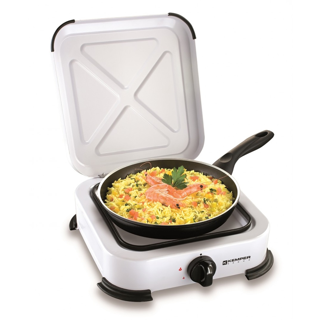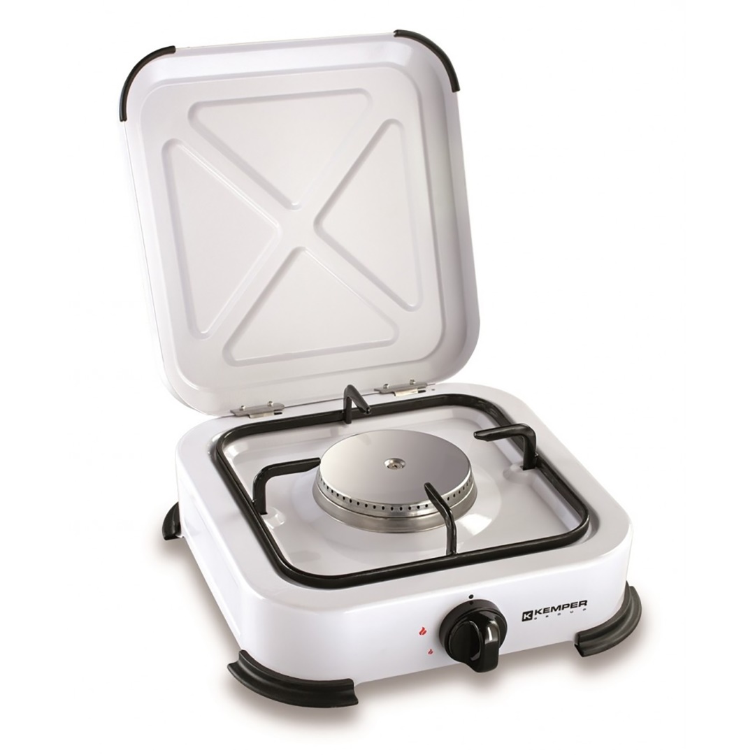 Επιτραπέζια εστία μαγειρέματος υγραερίου με 1 ανοξείδωτο καυστήρα υψηλής ισχύος της εταιρίας KEMPER. Διαθέτει σχάρα για την καλύτερη και ασφαλέστερη τοποθέτηση των μαγειρικών σκευών. Σταθερό και στιβαρό προιόν με καπάκι και αφαιρούμενη σχάρα για εύκολο και γρήγορο καθάρισμα. Κατασκευασμένη από εξαιρετικής ποιότητας υλικό. Μεταφέρεται εύκολα και γρήγορα ,καθώς επίσης ενδύκνειται για οικιακή χρήση αλλά και για υπαίθριους χώρους όπως είναι το camping, η αυλή, σε εξορμίσεις στο βουνό ή στην θάλλασα κ.α.