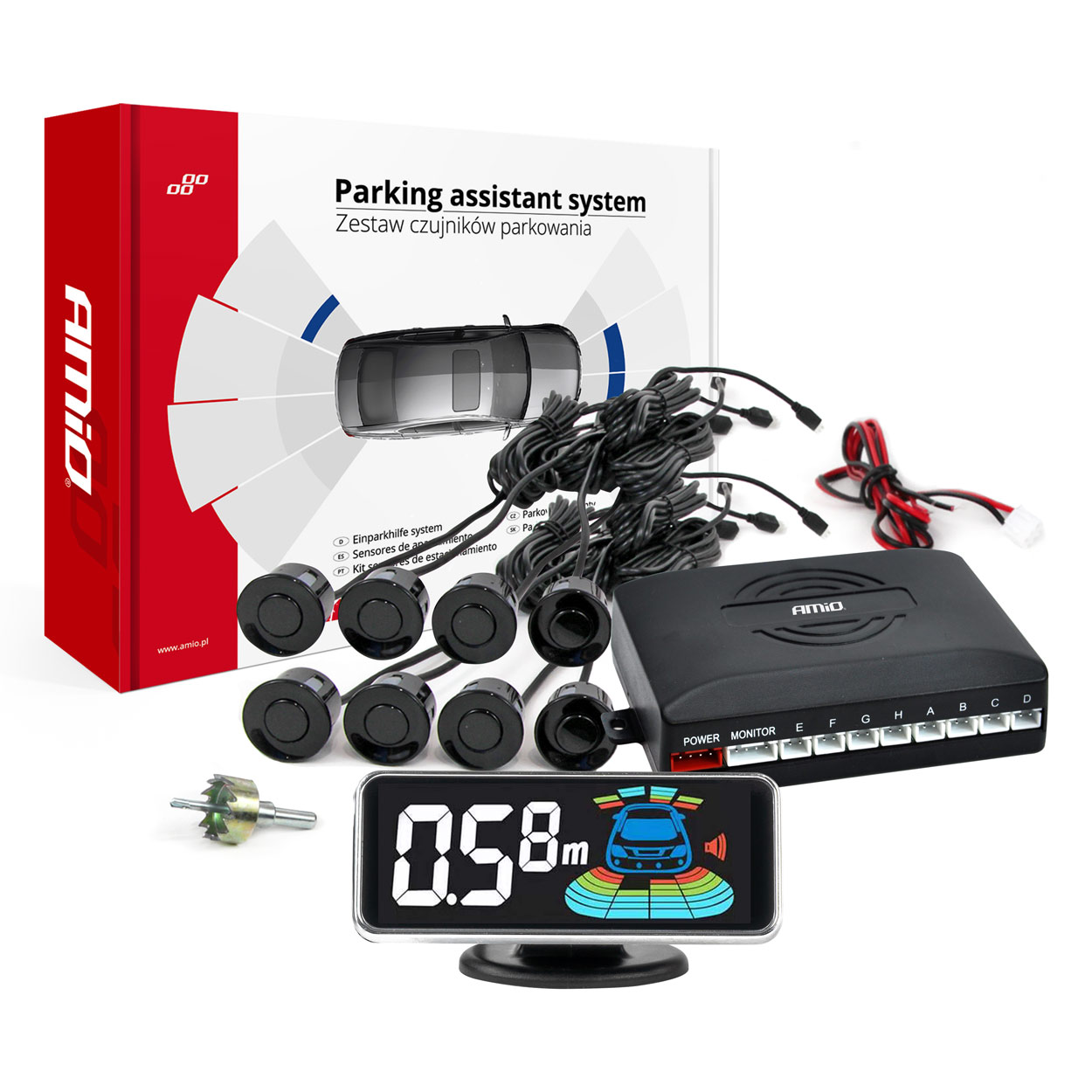 ΣΥΣΤΗΜΑ ΠΑΡΚΑΡΙΣΜΑΤΟΣ 12V ΜΕ 8 ΑΙΣΘΗΤΗΡΕΣ ΣΕ ΜΑΥΡΟ ΧΡΩΜΑ 21,5mm ΜΕ BUZZER (ΗΧΟ) ΚΑΙ ΟΘΟΝΗ LED 3D ΑΜΙΟ - 1 τεμ.Σύστημα παρκαρίσματος με 8 αισθητήρες σε μαύρο χρώμα με ήχο και οθόνη led από την εταιρεία AMiO, πολωνικής προέλευσης,