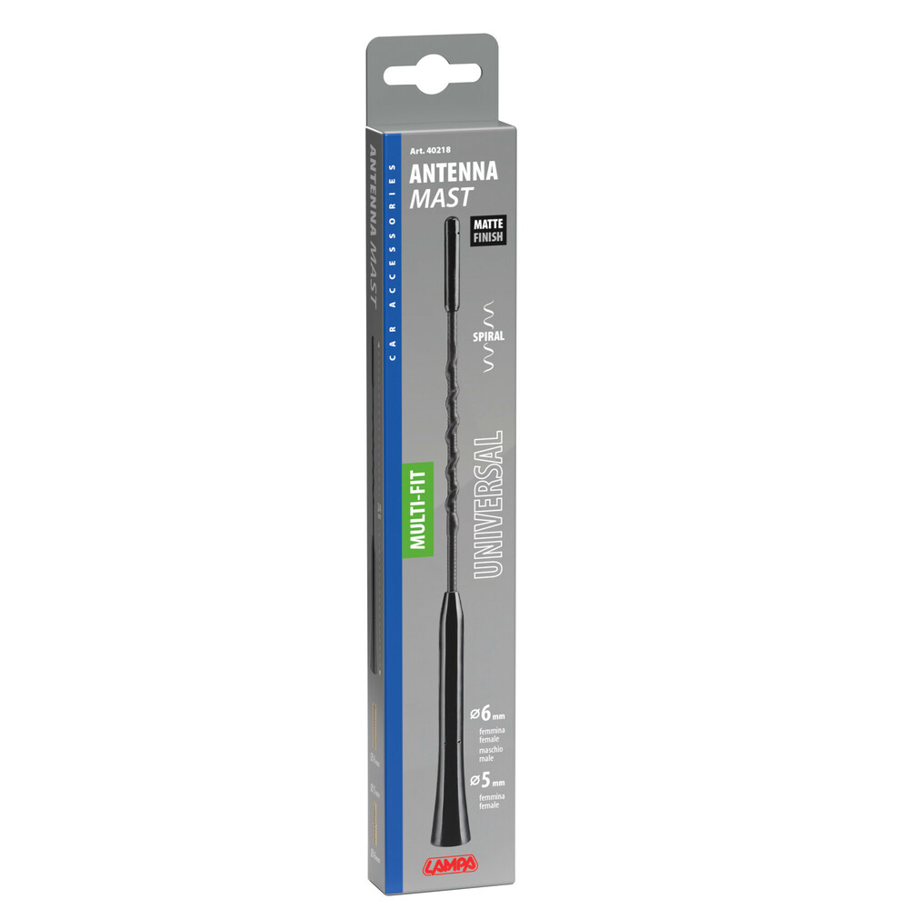 ΚΕΡΑΙΑ ΟΡΟΦΗΣ MULTI-FIT SYSTEM - Διάσταση: 24 cm. - Χρώμα: Μαύρο. - Ματ φινίρισμα με σπιράλ. - Universal. Κατάλληλο για αυτοκίνητα με τοποθέτηση κεραίας: - Φ 5 mm (θηλυκό) - Φ 6 mm (αρσενικό/θηλυκό)