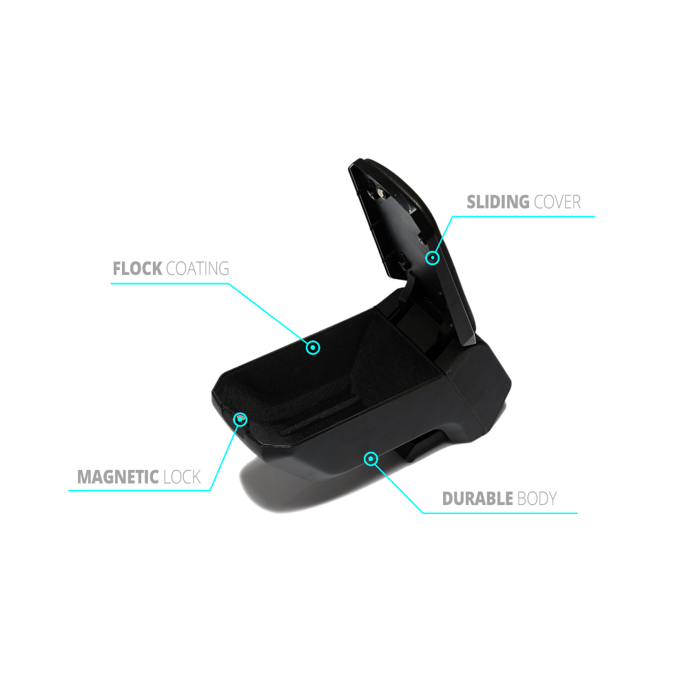 Ολοκληρωμένο σετ κονσόλας χειρόφρενου (τεμπέλης) σε μαύρο χρώμα μαζί με την ειδική βάση τοποθέτησης (μαρκέ αντάπτορας) που βιδώνει στο κάθισμα του οδηγού, από την εταιρεία S-Dizayn, τουρκικής προέλευσης.
