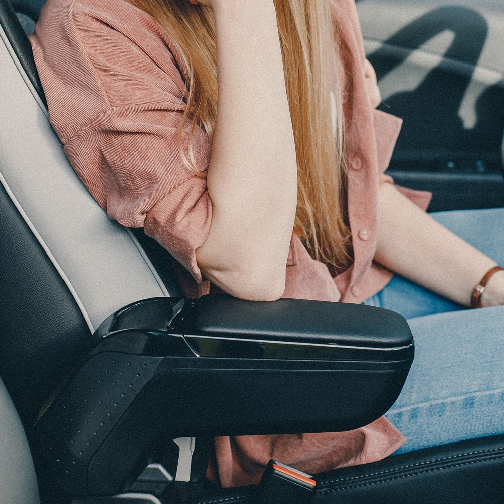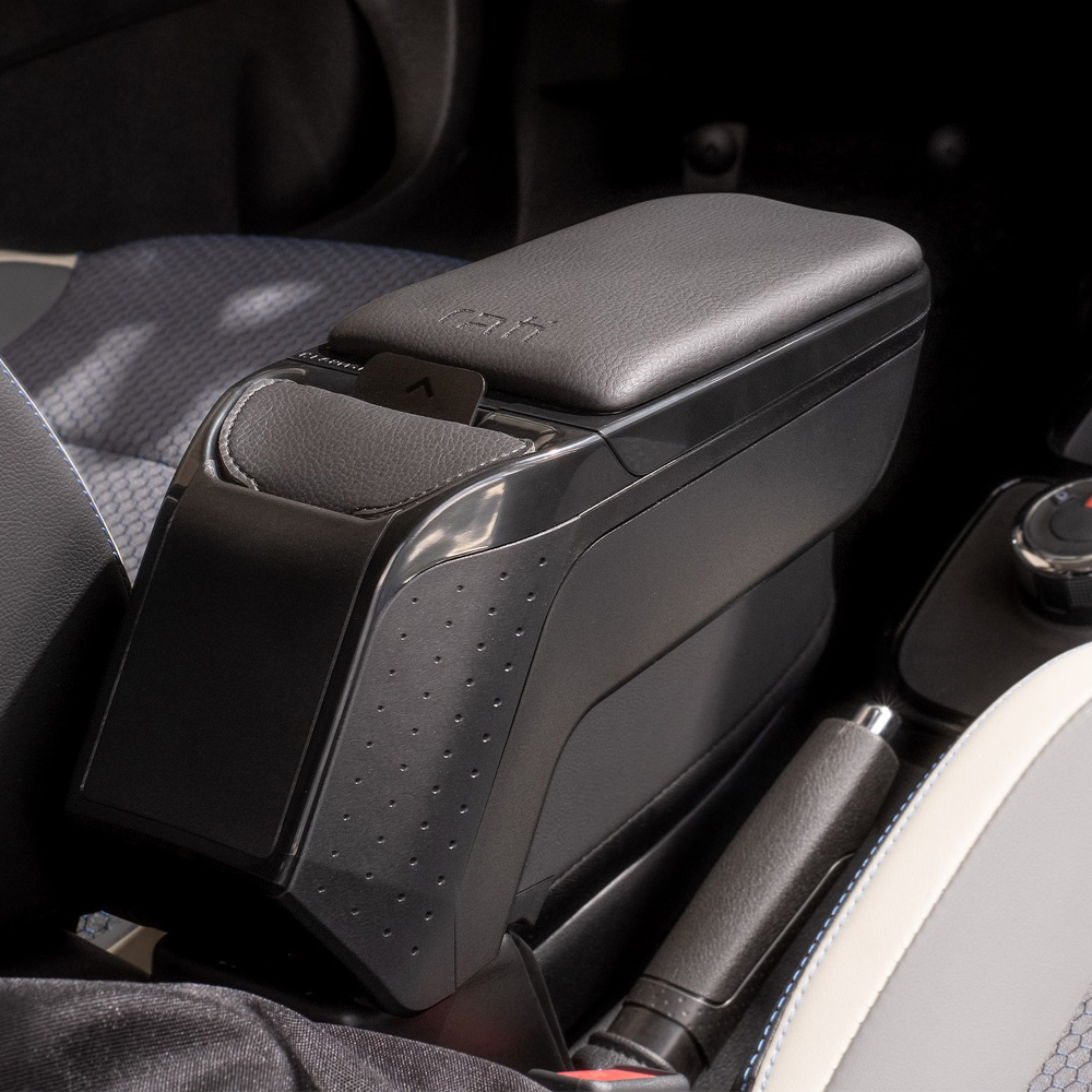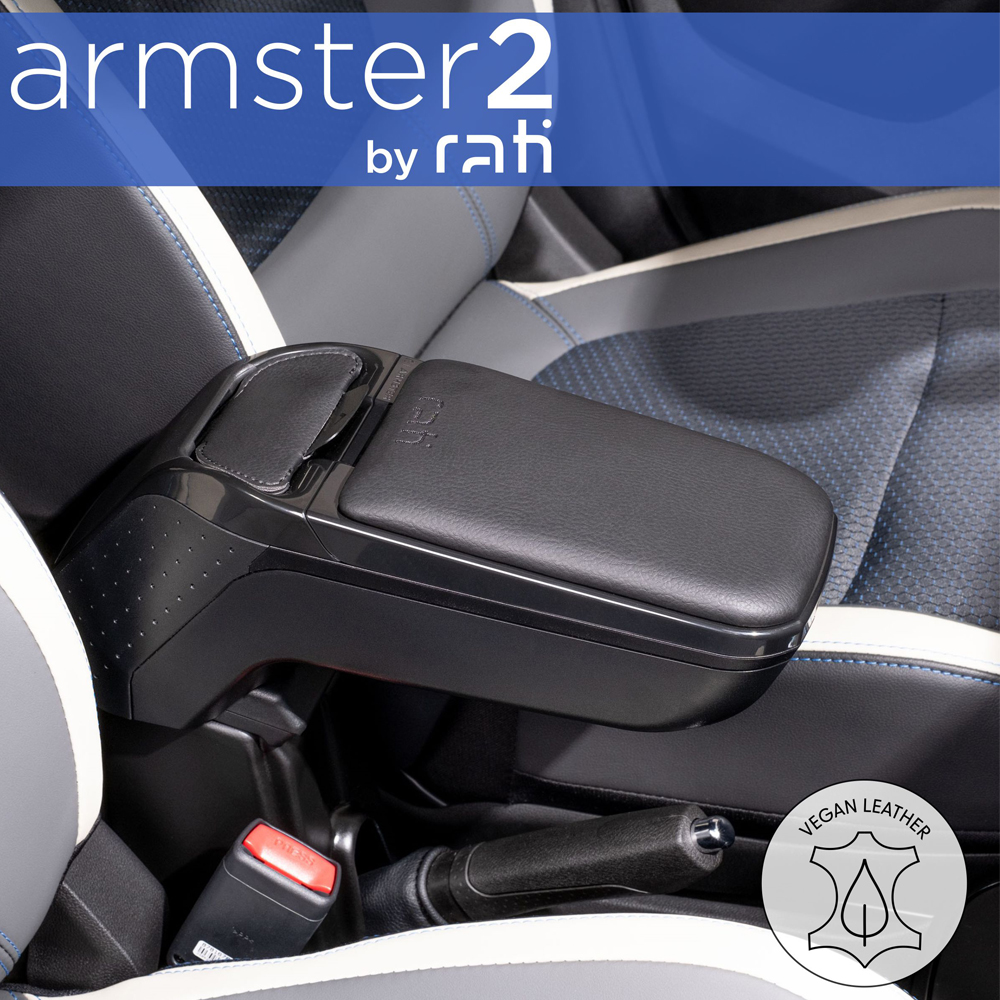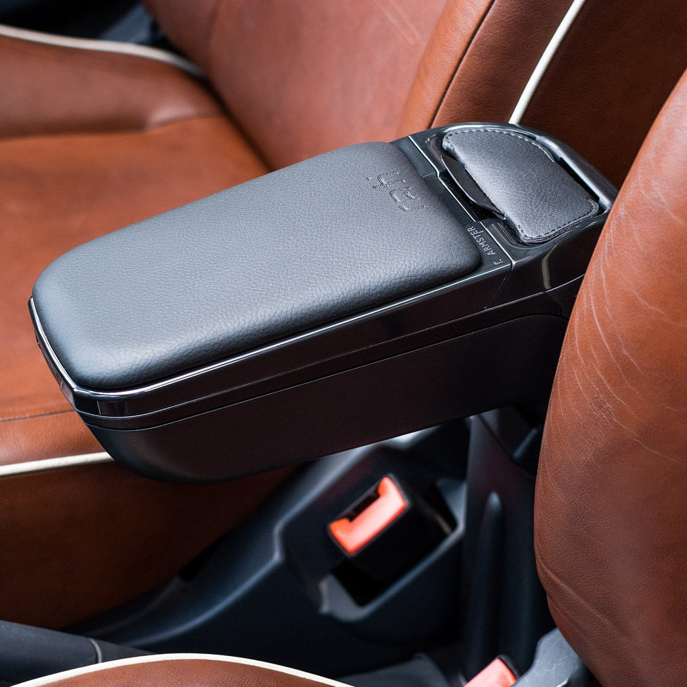 Τεμπέλης αυτοκινήτου-κονσόλα χειροφρένου ARMSTER 2 από την εταιρία RATI, ουγγρικής προέλευσης, σχεδιασμένος με κομψό και τετραγωνοποιημένο design, κατασκευασμένος από εξαιρετικής αντοχής πλαστικό υλικό σε μαύρη απόχρωση συνδυαστικά με οικολογικό τεχνόδερμα (συνθετική δερματίνη) και αφρώδη επένδυση σε μαύρο χρώμα στο άνω μέρος. Ιδανικό αξεσουάρ αυτοκινήτου για να στηρίζετε και να ξεκουράζετε τα άκρα σας κατά την οδήγηση, καθώς και για χρήση ως πρόσθετος αποθηκευτικός χώρος με άμεση πρόσβαση σε μικροπράγματα και προσωπικά αντικείμενα, χρήματα, κινητό τηλέφωνο, κλειδιά, κτλ.