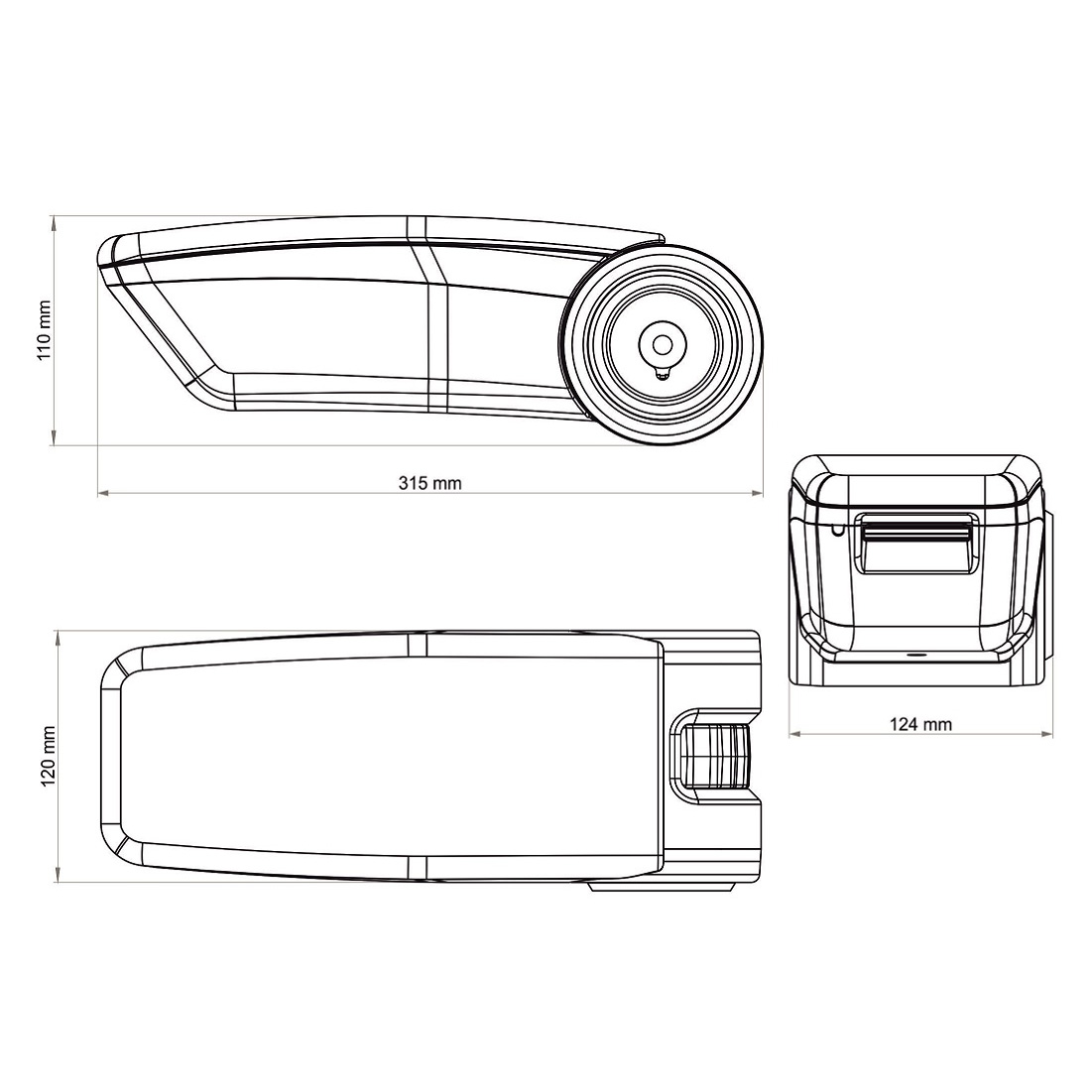 -Διαστάσεις: 315x124x110 mm (ΜxΠxΥ).