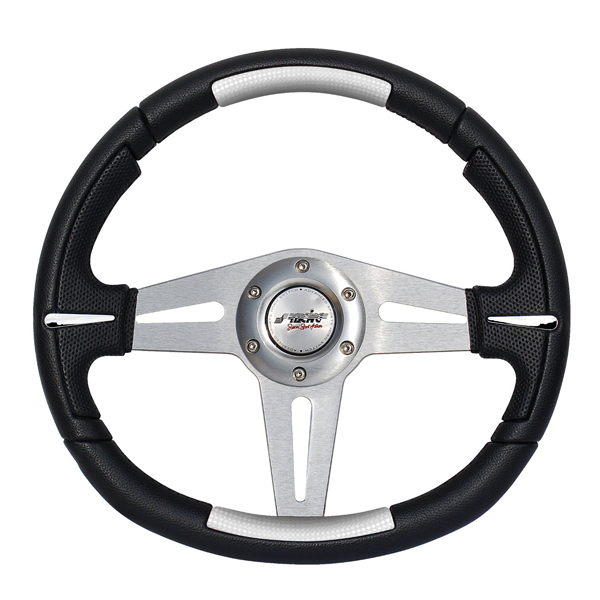 ΤΙΜΟΝΙ APOGEE ΙΝΟΧ 350mmΔερμάτινο τιμόνι μαύρο-inox δέρμα και ασημί σήμα Simoni Racing. Διάμετρος: 350 mm.