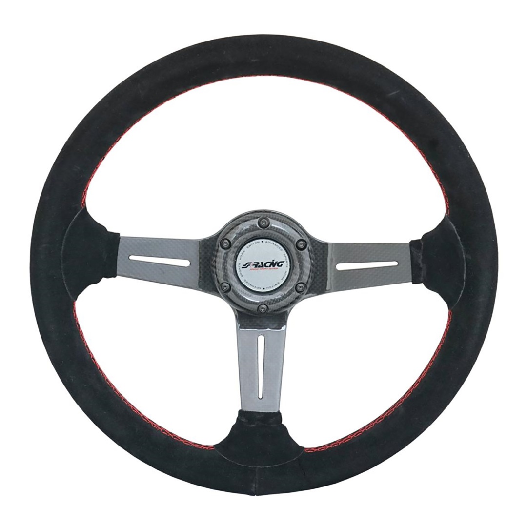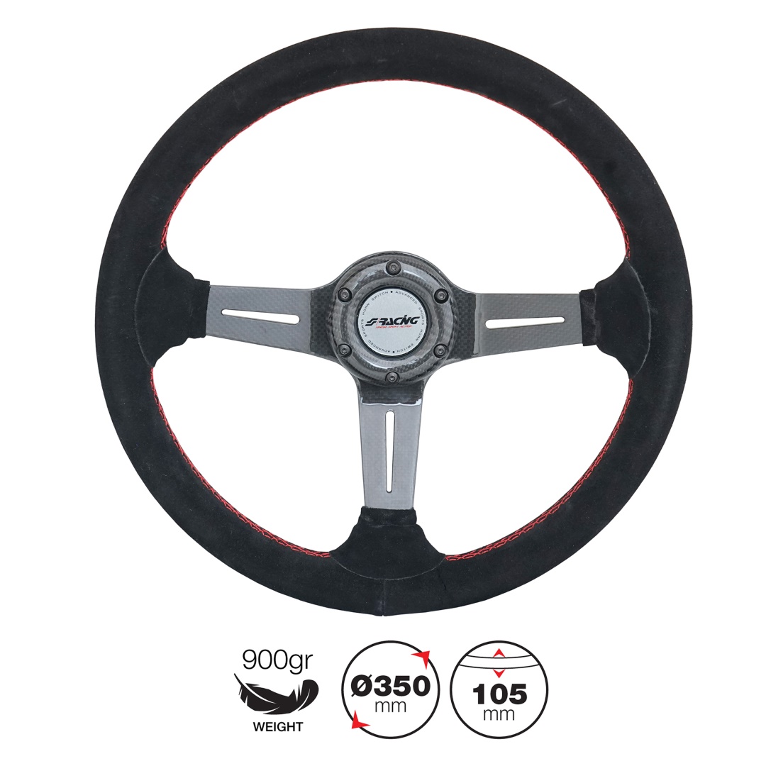 ΤΙΜΟΝΙ CARLOS ΜΑΥΡΟ/CARBON ΣΟΥΕΤ ΜΕ ΚΟΚΚΙΝΗ ΡΑΦΗ ΤΡΙΑΚΤΙΝΟ ΔΙΑΜΕΤΡΟΣ 350mm ΠΑΧΟΣ 105mm ΒΑΡΟΣ 900gr
