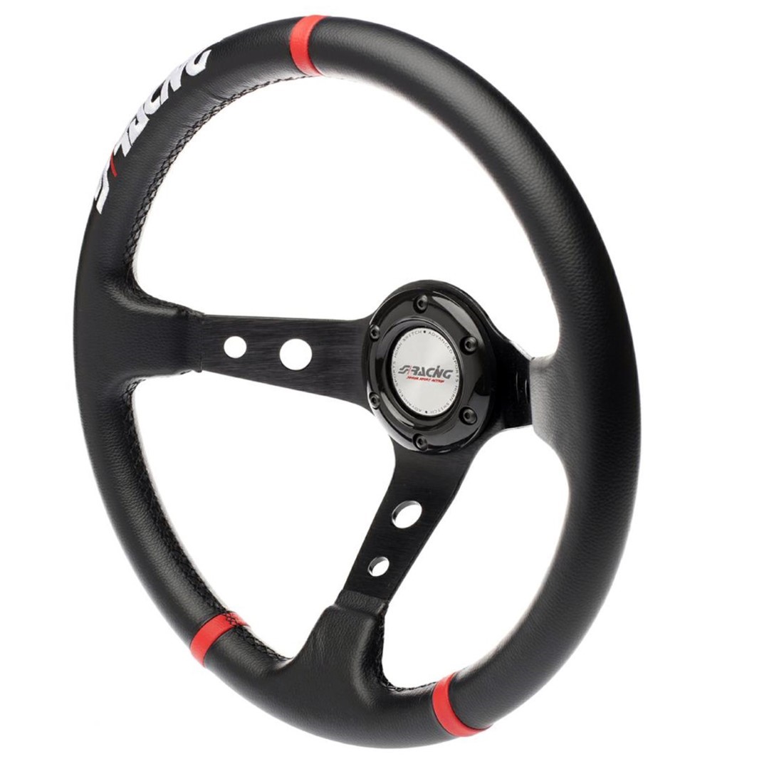 Τιμόνι αυτοκινήτου από την εταιρία SIMONI RACING, ιταλικής προελεύσεως σε μαύρο χρώμα με κόκκινες λεπτομέρειες υπό μορφή δακτυλίων και διακοσμητικό με άσπρο logo, κατασκευασμένο από οικολογική δερματίνη (eco eather). Διαθέτει λαβή με υφή και αίσθηση λείας, μαλακής δερματίνης και 3 μεταλλικές ακτίνες (μπράτσα). Έχει universal εφαρμογή, για να ταιριάζει στα περισσότερα μοντέλα αυτοκινήτων και προσφέρει ασφαλές, άνετο κράτημα, προσδίδοντας παράλληλα μία μοναδική κομψότητα στο εσωτερικό του οχήματος. Εύκολη και γρήγορη τοποθέτηση.