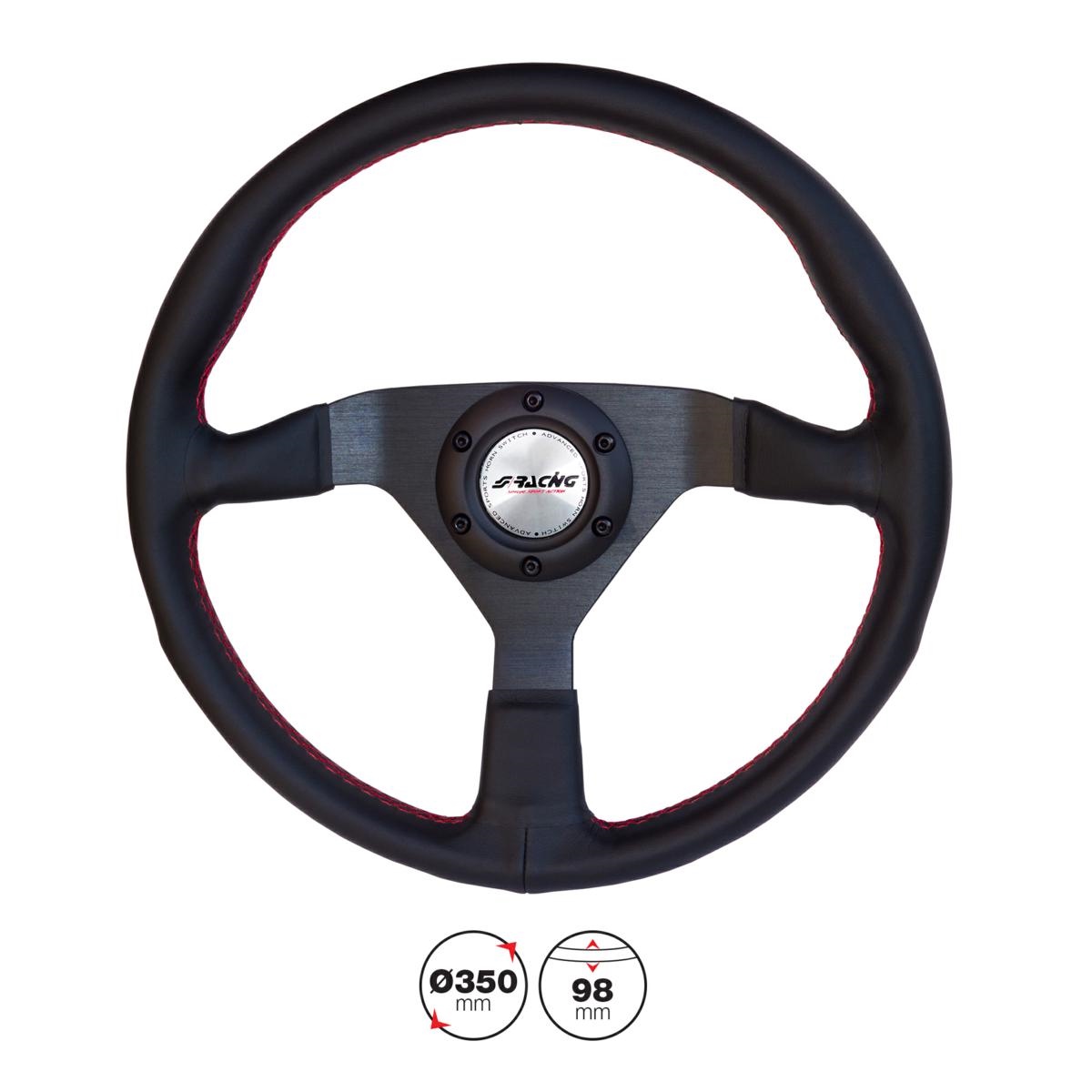 ΤΙΜΟΝΙ NOB ΔΕΡΜΑΤΙΝΟ ΤΡΙΑΚΤΙΝΟ ΜΑΥΡΟ ΜΕ ΚΟΚΚΙΝΗ ΡΑΦΗ ΔΙΑΜΕΤΡΟΣ 350mm ΠΑΧΟΣ 98mm SIMONI RACING - 1 TEM