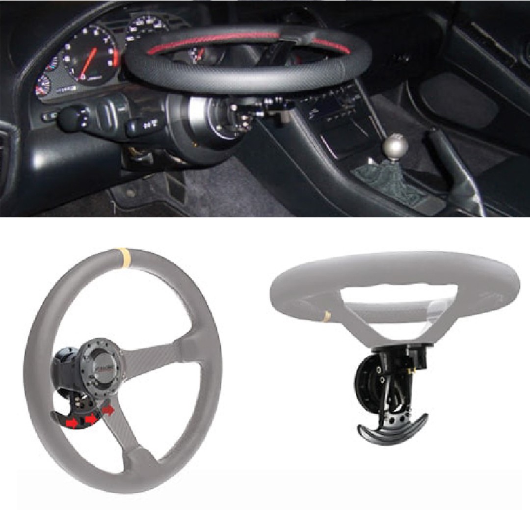 Αντάπτορας για τιμόνι αυτοκινήτου από την εταιρία SIMONI RACING, ιταλικής προέλευσης, κατασκευασμένος από υψηλής ποιότητας ανοδιωμένο αλουμίνιο - ενισχυμένο υλικό με ένα πρόσθετο λεπτό στρώμα οξείδωσης αλουμινίου, ενσωματωμένο πλήρως στην εξωτερική επιφάνεια του αντάπτορα προσφέροντας ανθεκτικότητα - σε μαύρο χρώμα. Είναι εξοπλισμένος με μοχλό ταχείας απελευθέρωσης (quick release) για άμεση ανάκλιση του τιμονιού κατά 90 μοίρες (σπάσιμο) με μία μόνο κίνηση! Ιδανικό αξεσουάρ αυτοκινήτου που επιτρέπει την εύκολη πρόσβαση του οδηγού σε αγωνιστικά οχήματα (racing) ή σε αυτοκίνητα με bucket καθίσματα. Ο αντάπτορας έχει universal εφαρμογή, είναι σχεδιασμένος με 12 τρύπες και συμβατός με τα περισσότερα τιμόνια, συμπεριλαμβανομένων και των Nardi, Personal, Momo, κτλ. Η συσκευασία διαθέτει καλώδια και επαφές για σύνδεση με τη κόρνα, εργαλείο τοποθέτησης και 20 βίδες M5.