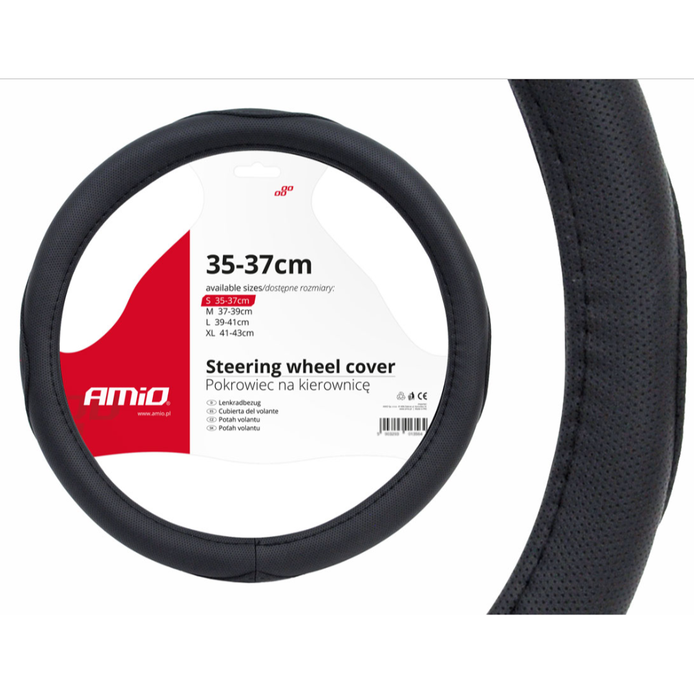 Κάλυμμα τιμονιού από καλής ποιότητας τεχνόδερμα, μαλακό σε υφή και με σταθερή εφαρμογή κατά την χρήση από την εταιρία AMIO. Κατάλληλο για τιμόνια που έχουν διάμετρο 35/37cm. Ιδανική λύση για να προστατεύσετε το τιμόνι του αυτοκινήτου σας ή για να καλύψετε ήδη υπάρχουσες φθορές που έχουν προκληθεί από την χρήση.