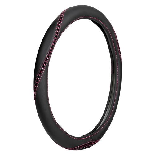 Κάλυμμα τιμονιού MERILYN από την εταιρία LAMPA, ιταλικής προέλευσης, εξαιρετικής ποιότητας και αντοχής, μαλακής υφής, κατασκευασμένο από διάτρητο (τρυπητό) TPE (Thermoplastic Elastomer), άοσμο, μη τοξικό, οικολογικό προϊόν (ανακυκλώσιμο υλικό). Το συγκεκριμένο κάλυμμα τιμονιού διαθέτει ''κυματιστή'' ενιαία ταινία από ροζ strass, δίνοντας στο σχεδιασμό του μια επιπλέον λάμψη και κομψή αισθητική. Η κατάλληλη λύση για να προστατεύσετε το τιμόνι σας από τις φθορές που μπορεί να προκληθούν από την τριβή κατά τη χρήση αλλά και για τα τιμόνια που ήδη έχουν φθαρεί. Το κάλυμμα τιμονιού είναι συμβατό με τιμόνια διαμέτρου 35/37 cm.