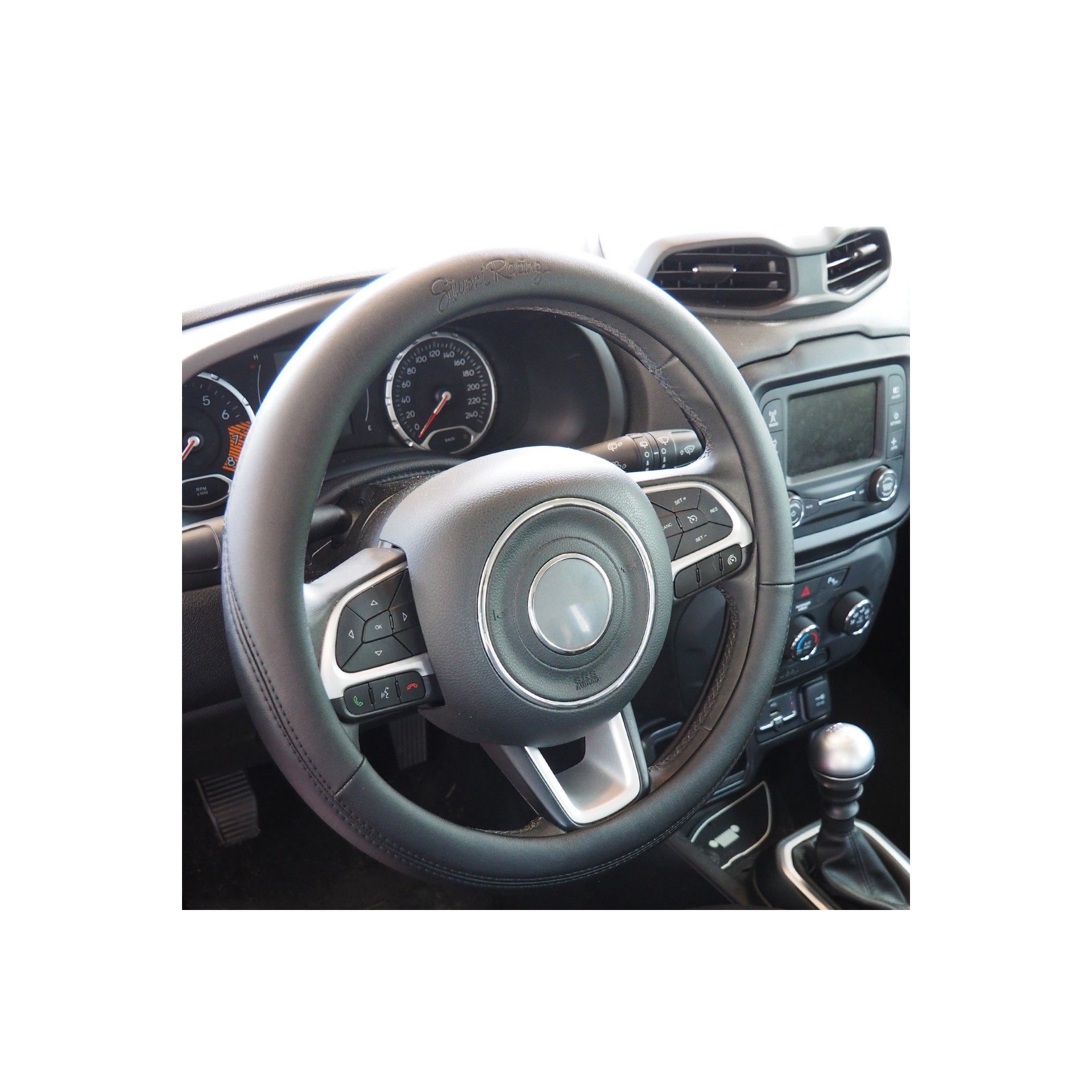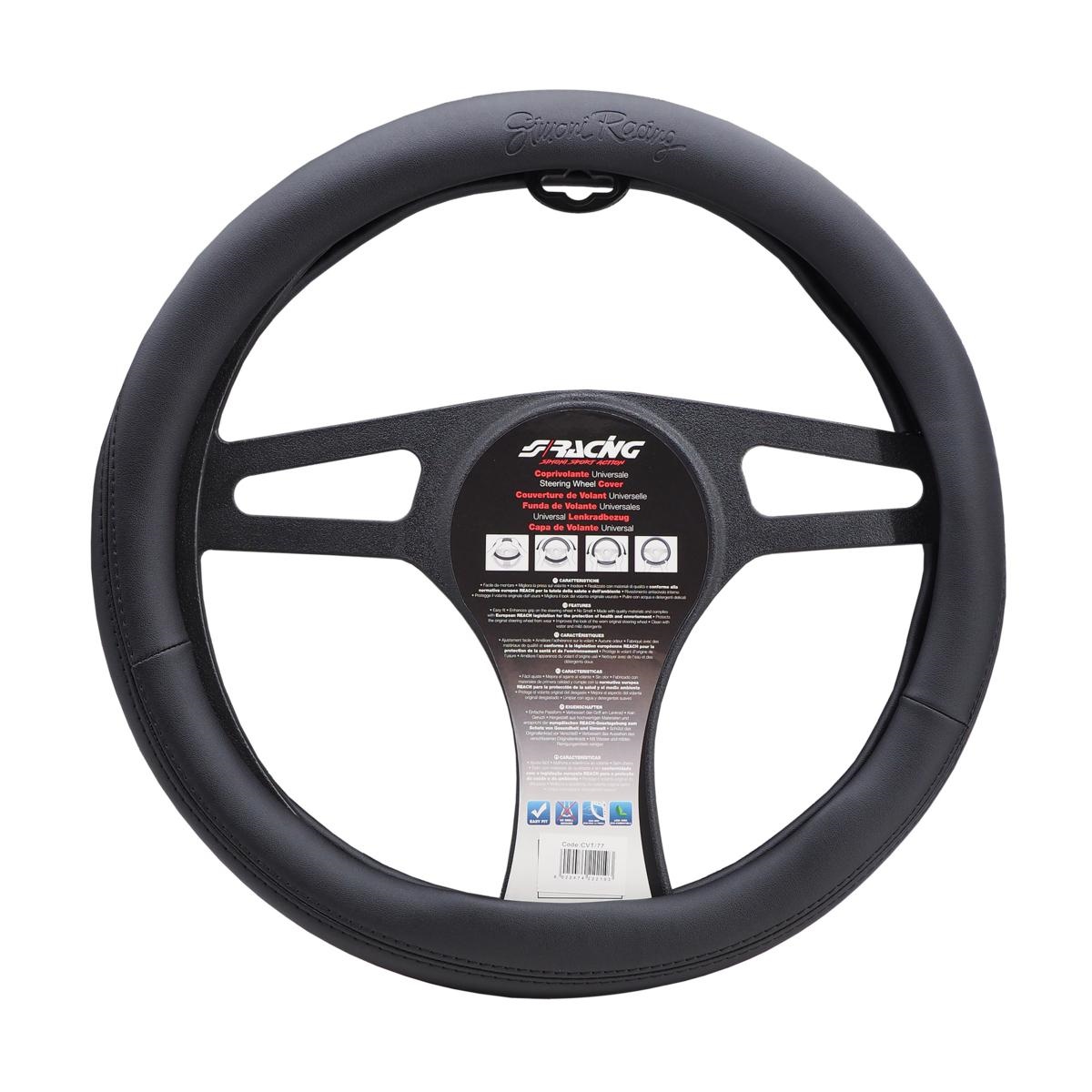 Κάλυμμα τιμονιού EASY BLACK μαύρο από οικολογικό δέρμα με λογότυπο, από την εταιρεία SIMONI RACING, ιταλικής προέλευσης.