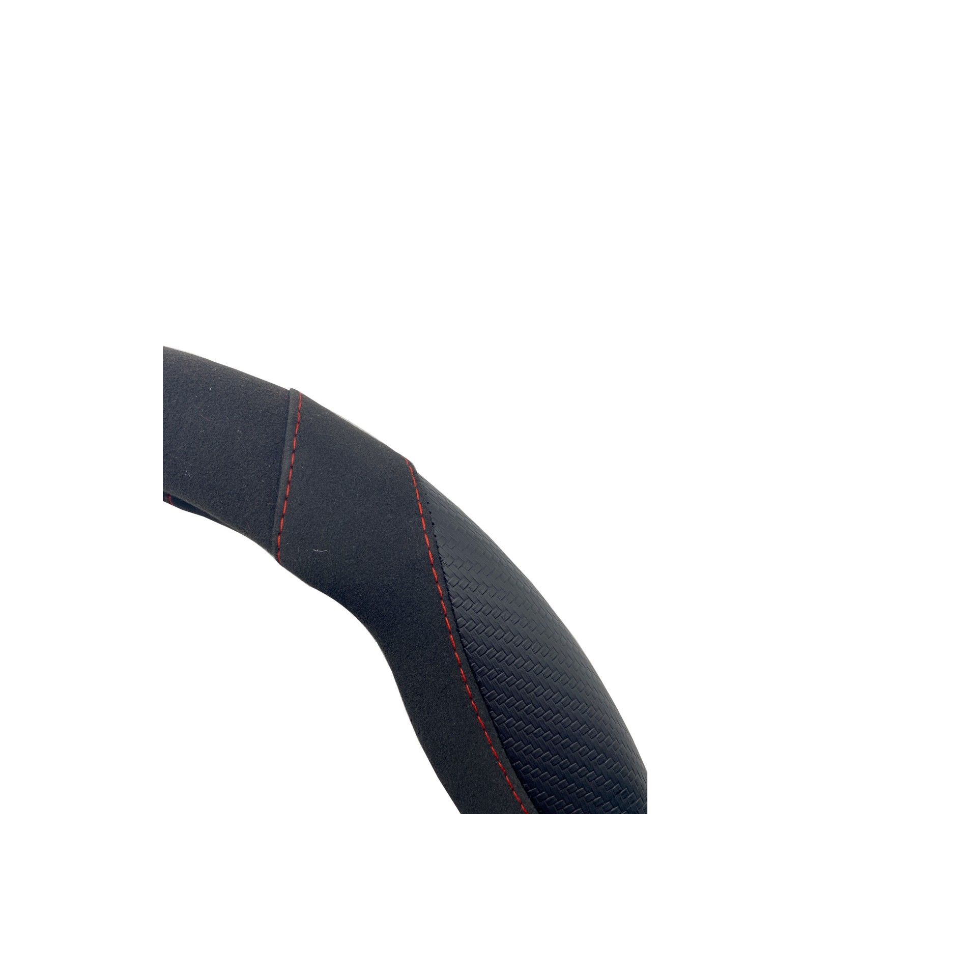 Κάλυμμα τιμονιού από οικολογικό δέρμα σε μαύρο/κόκκινο χρώμα με carbon look, από την εταιρεία SIMONI RACING, ιταλικής προέλευσης.