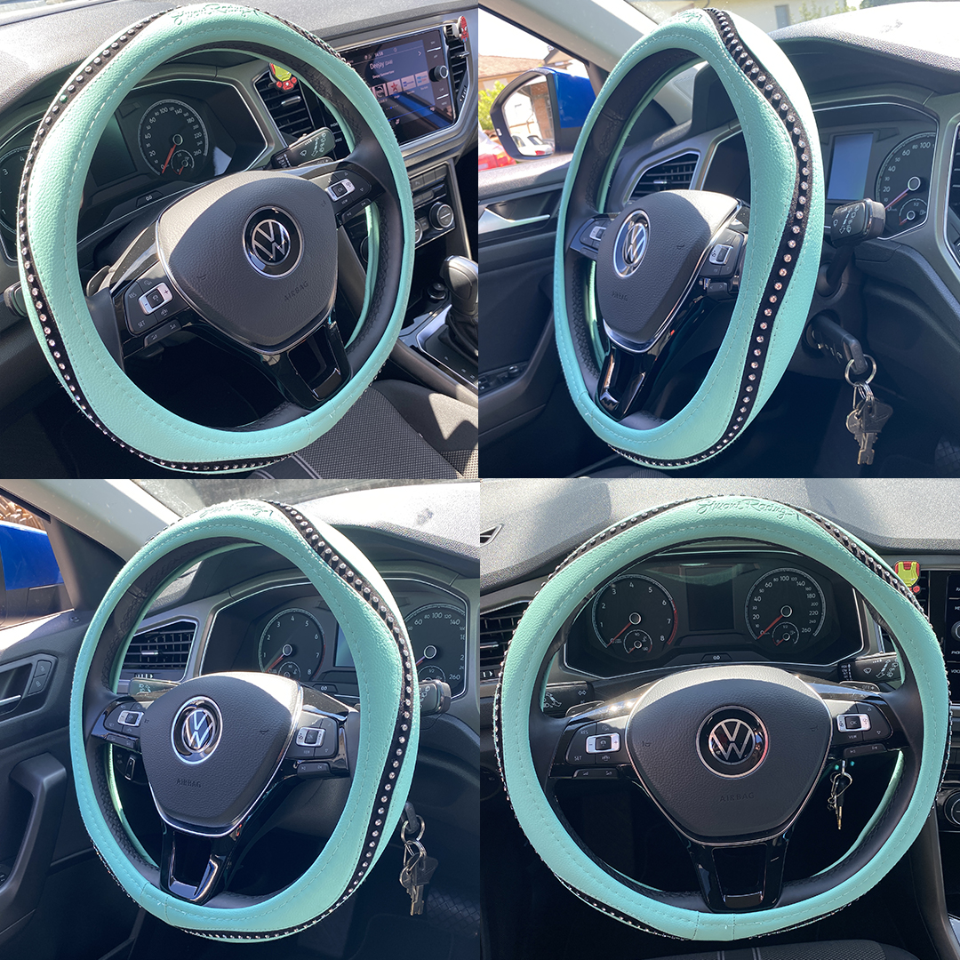Κάλυμμα τιμονιού SNAPPY TIFFANY πράσινο/μαύρο με στρας απο οικολογικό δέρμα (Μ) 37-39cm, απο την εταιρεία SIMONI RACING, ιταλικής προέλευσης.