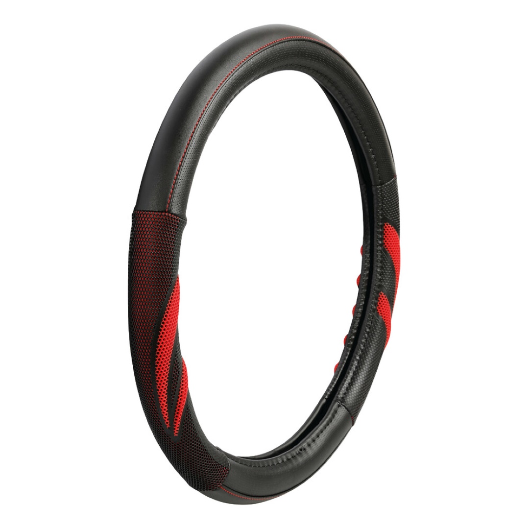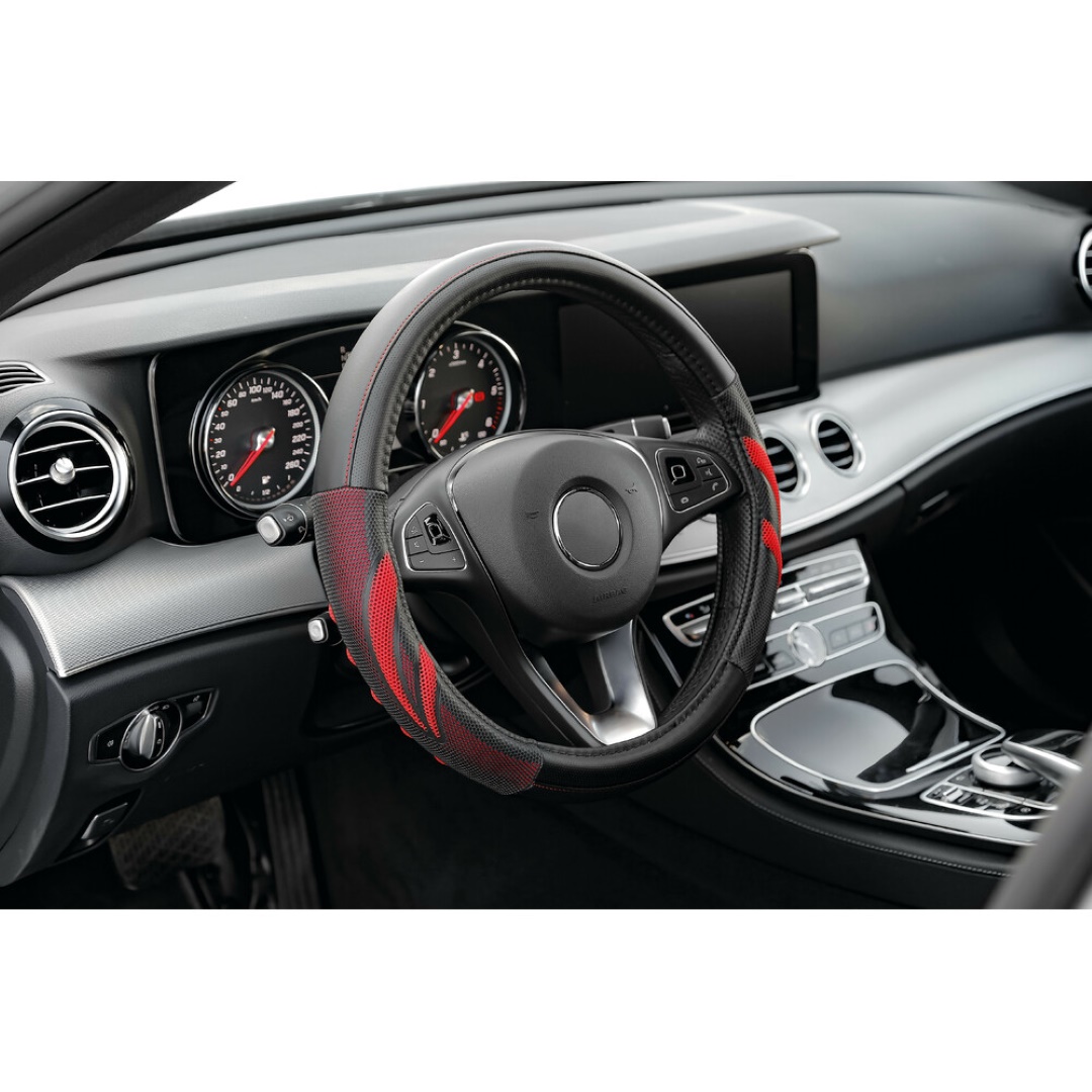 Κάλυμμα τιμονιού κατασκευασμένο από εξαιρετικής ποιότητας δερματίνη, ιταλικής προέλευσης της σειράς Suzuka από την εταιρία Lampa. Είναι κατασκευασμένο από οικολογικό υλικό, άοσμο, φιλικό προς το περιβάλλον και εξαιρετικά μαλακό στην υφή. Ιδανικό για όλες τις καιρικές συνθήκες και κατάλληλο για τιμόνια με διάμετρο 37/39 cm. Διαθέτει σχέδιο στις λαβές (δεξιά-αριστερά), διακοσμώντας το εσωτερικό της καμπίνας σας.