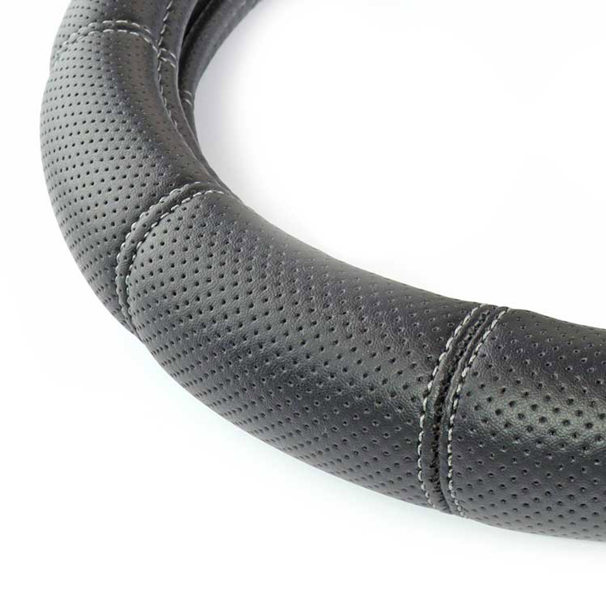 ΚΑΛΥΜΜΑ ΤΙΜΟΝΙΟΥ SWC-29-M 37-39cm ΔΙΑΤΡΗΤΟ ΜΑΥΡΟ ΜΕ ΓΚΡΙ ΡΑΦΗ AMIO - 1 Τεμ. Κάλυμμα τιμονιού SWC-29-M διάτρητο σε μαύρο χρώμα με γκρι ραφή, από την εταιρεία ΑΜΙΟ, πολωνικής προέλευσης. -Διάμετρος: 37-39cm. Συσκευασία 1 τεμαχίου
