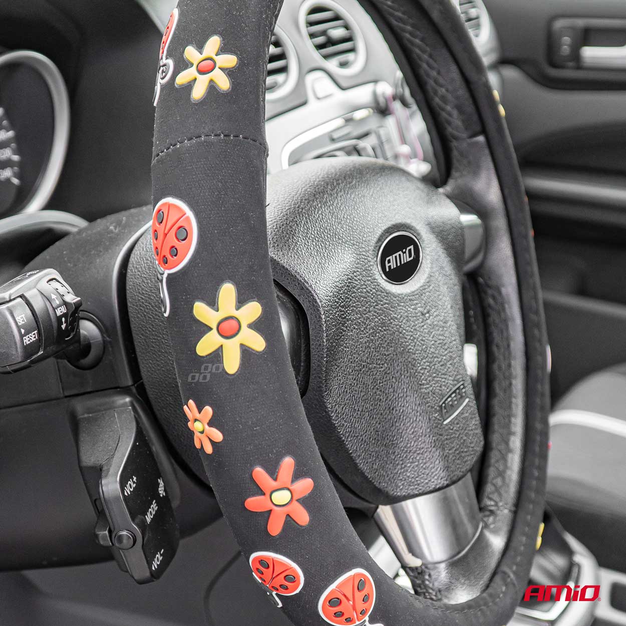 ΚΑΛΥΜΜΑ ΤΙΜΟΝΙΟΥ SWC-58 (M) 37>39cm ΜΑΥΡΟ ΜΕ ΣΧΕΔΙΟ ΠΟΛΥΧΡΩΑ ΛΟΥΛΟΥΔΙΑ & ΠΑΣΧΑΛΙΤΣΕΣ AMIO - 1 ΤΕΜ.