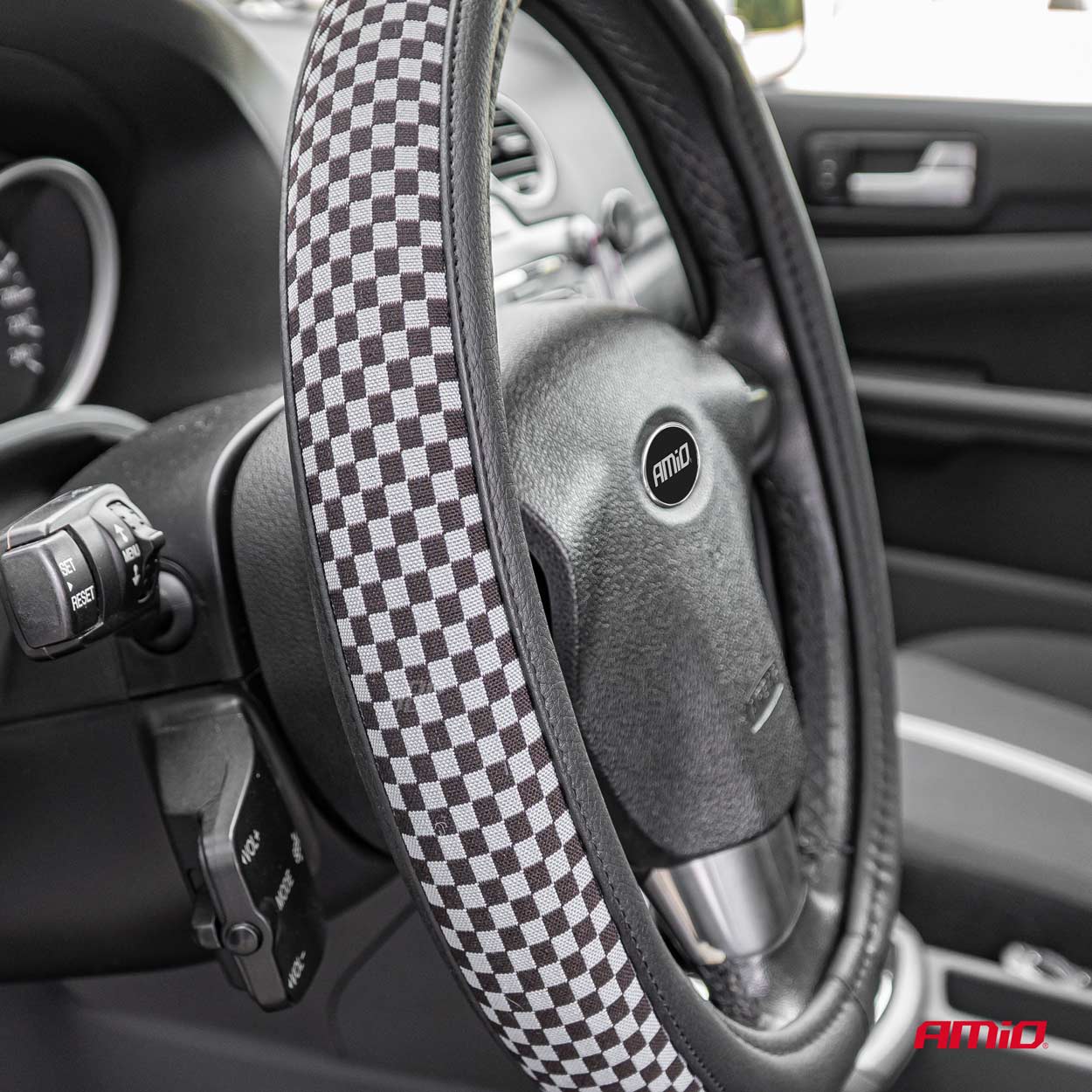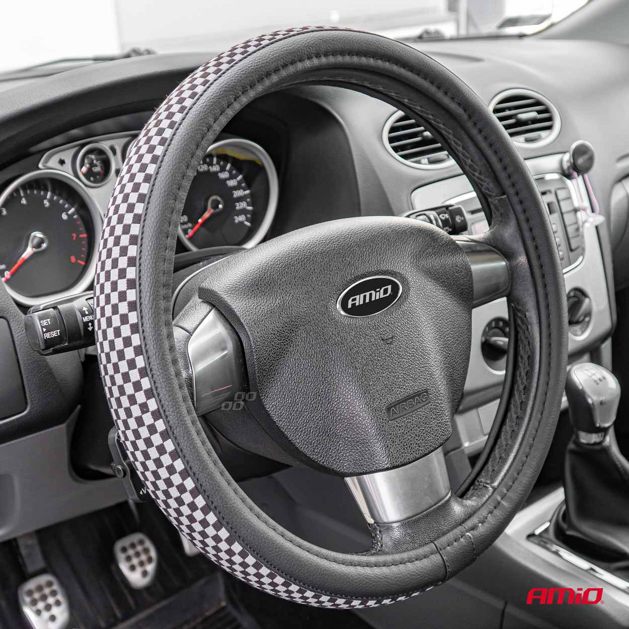 ΚΑΛΥΜΜΑ ΤΙΜΟΝΙΟΥ SWC-60 (M) 37>39cm ΜΑΥΡΟ ΜΕ ΣΧΕΔΙΟ ΑΣΠΡΟΜΑΥΡΗ ΣΚΑΚΙΕΡΑ AMIO - 1 ΤΕΜ.