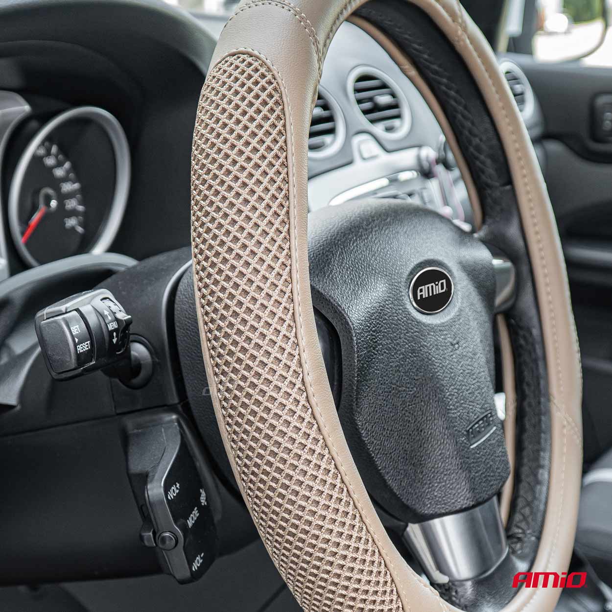 ΚΑΛΥΜΜΑ ΤΙΜΟΝΙΟΥ SWC-61 (M) 37>39cm ΜΠΕΖ ΜΕ ΤΡΥΠΗΤΟ ΣΧΕΔΙΟ ΣΤΑ ΠΛΑΙΝΑ AMIO - 1 ΤΕΜ.