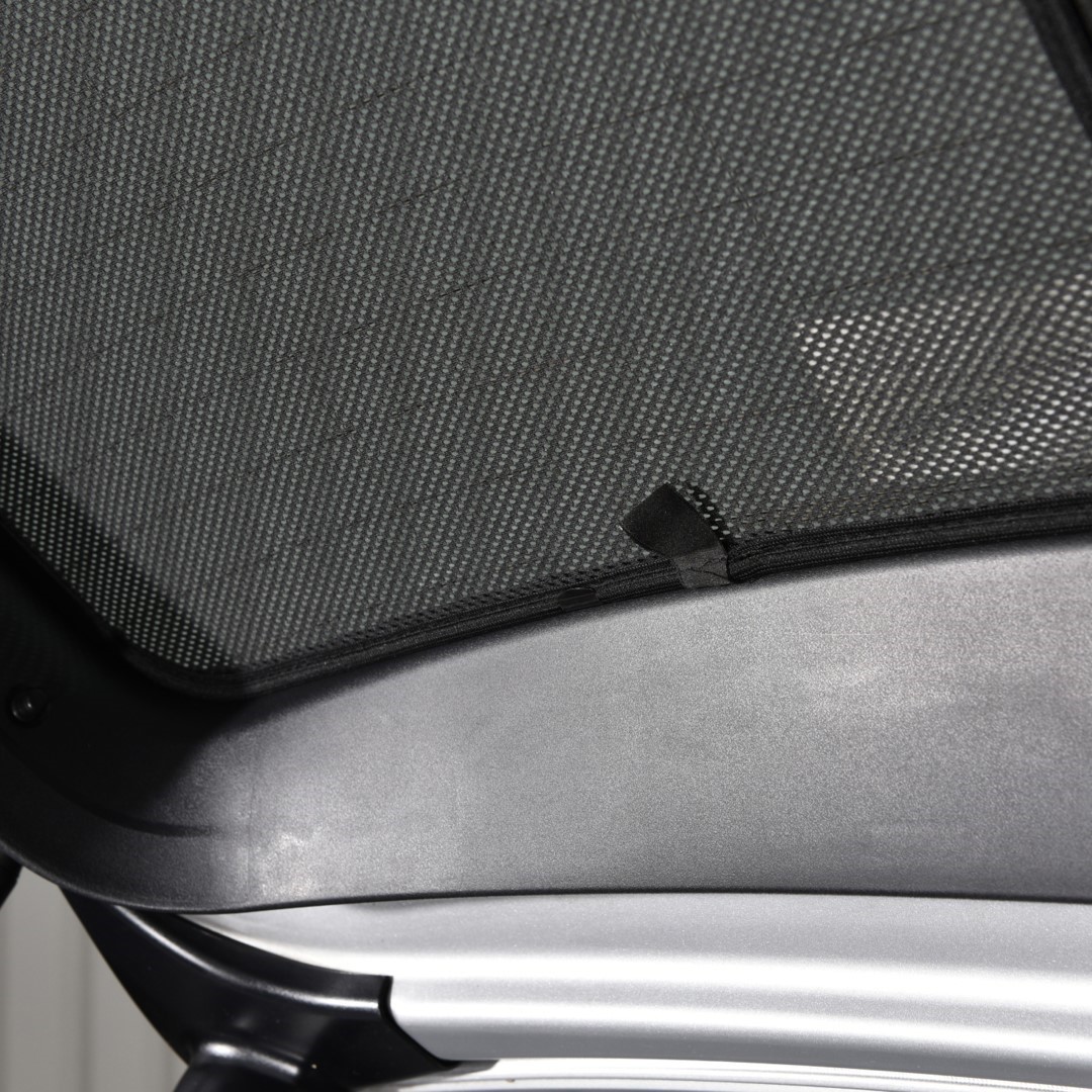 Κουρτινάκια για ηλιοπροστασία από την εταιρία CAR SHADES, βρετανικής κατασκευής και προέλευσης, ειδικά σχεδιασμένα για ταιριάζουν ακριβώς στα πίσω παράθυρα και το πίσω παρμπρίζ του οχήματος. Κατασκευασμένα από υψηλής ποιότητας διάτρητο υλικό σε μαύρο χρώμα, προσφέρουν 100% ιδιωτικότητα, κάλυψη, αντιηλιακή προστασία από UV ακτινοβολία και κομψή αισθητική.