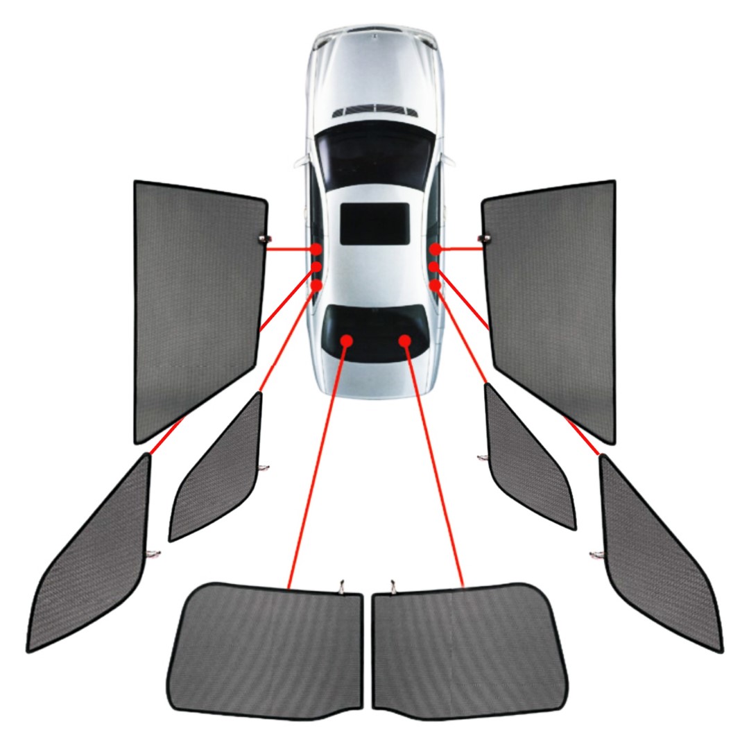 Κουρτινάκια για ηλιοπροστασία από την εταιρία CAR SHADES, βρετανικής κατασκευής και προέλευσης, ειδικά σχεδιασμένα για ταιριάζουν ακριβώς στα πίσω παράθυρα και το πίσω παρμπρίζ του οχήματος. Κατασκευασμένα από υψηλής ποιότητας διάτρητο υλικό σε μαύρο χρώμα, προσφέρουν 100% ιδιωτικότητα, κάλυψη, αντιηλιακή προστασία από UV ακτινοβολία και κομψή αισθητική.