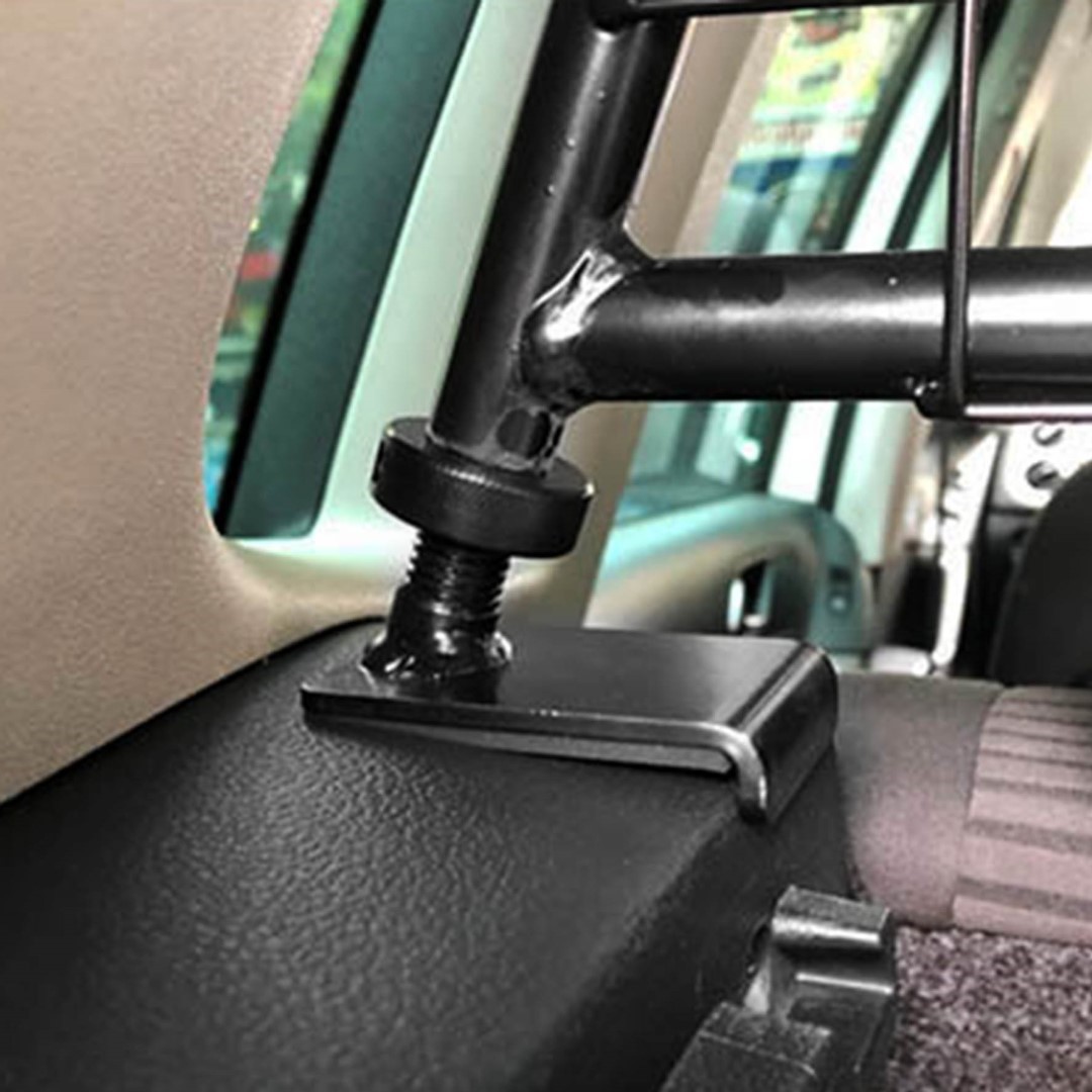 Το πλέγμα διαθέτει στηρίγματα, τα οποία "πιάνουν" σε 3 σημεία (πάνω, δεξιά και αριστερά) και προσαρμόζονται με τη χρήση ροδέλας, ώστε να συγκρατείται και να παραμένει σταθερό κατά τη διάρκεια της μεταφοράς, χωρίς τον κίνδυνο να φύγει ή να μετακινηθεί. Όλα τα σημεία που έρχονται σε επαφή με το εσωτερικό της ταπετσαρίας ή τα πλαστικά του οχήματος είναι ενισχυμένα με επένδυση/μαξιλαράκια στήριξης από αντιολισθητικό λάστιχο για προστασία και αποφυγή από γρατζουνιές ή φθορές. Εύκολη και γρήγορη τοποθέτηση.