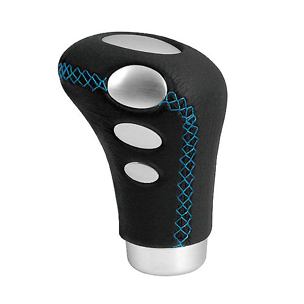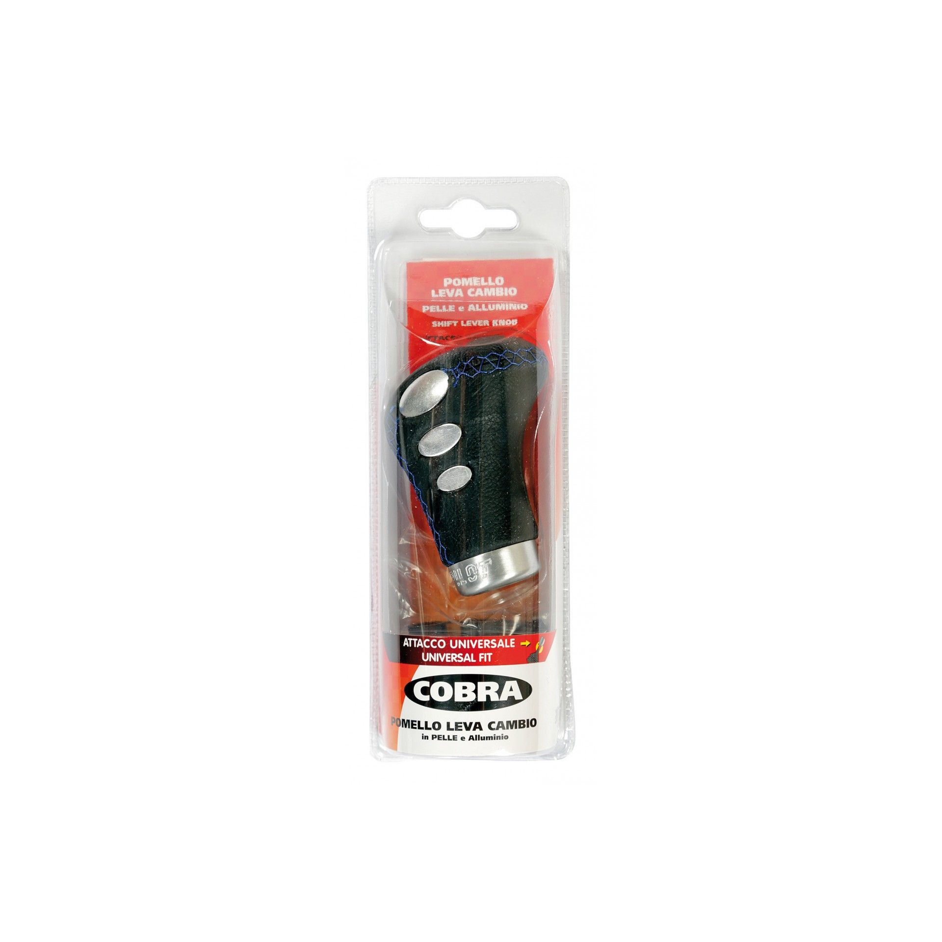Πόμολο ταχυτήτων κατασκευασμένο από δερματίνη με λεπτομέρειες από αλουμινίο. Η συσκευασία περιλαμβάνει κιτ τοποθέτησης με αντάπτορες και άλεν κλειδί. Universal εφαρμογή, ταιριάζει στα περισσότερα αυτοκίνητα με απλό μοχλό ταχυτήτων με μέγιστη διάμετρο 15 mm αλλά και για μοχλό που διαθέτει επιλογέα ταχυτήτων με ανύψωση ή μετατόπιση (σηκωτή ή πατητή όπισθεν) και μέγιστη διάμετρο 31 mm.