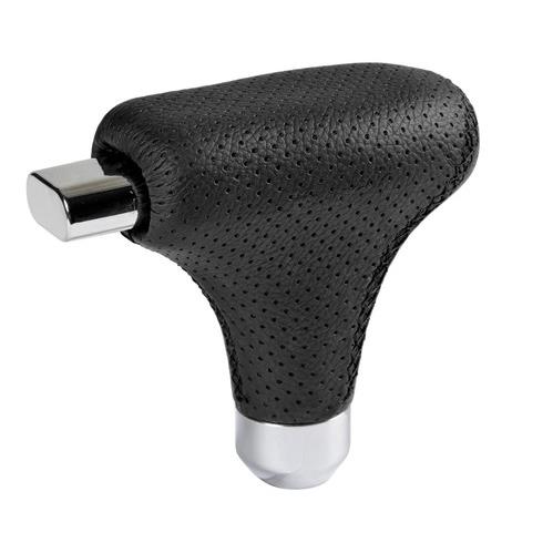 Πόμολο για λεβιέ ταχυτήτων για οχήματα με αυτόματο κιβώτιο ταχυτήτων, κατασκευασμένο από δερματίνη με μαύρες ραφές στο πλάι και βάση από χρωμιωμένο αλουμίνιο. Η συσκευασία περιλαμβάνει κιτ τοποθέτησης με 3 διαφορετικούς αντάπτορες . Universal εφαρμογή, ταιριάζει στα περισσότερα αυτοκίνητα με μοχλό ταχυτήτων με μέγιστη διάμετρο 15 mm.