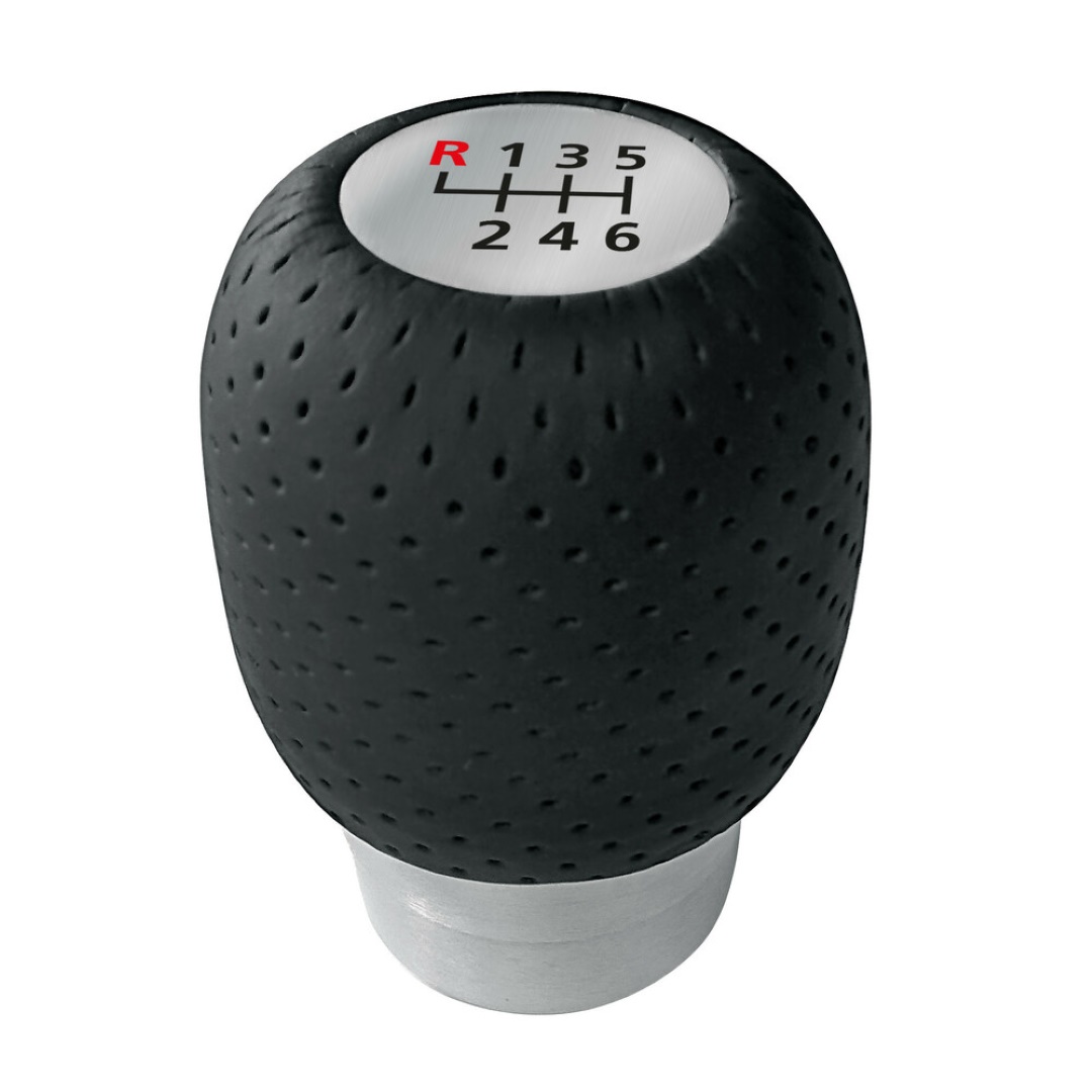 Πόμολο για λεβιέ ταχυτήτων, κατασκευασμένο από δέρμα και βάση από χρωμιωμένο αλουμίνιο. Η συσκευασία περιλαμβάνει 2 αυτοκόλλητα με ενδείξεις ταχυτήτων για να προσαρμόσετε στο πόμολο το κατάλληλο με βάσει το πως είναι διαμορφωμένο το κιβώτιο ταχυτήτων του οχήματός σας. Universal εφαρμογή, ταιριάζει στα περισσότερα αυτοκίνητα με απλό μοχλό ταχυτήτων με μέγιστη διάμετρο 15 mm, αλλά και για μοχλό που διαθέτει επιλογέα ταχυτήτων με ανύψωση ή μετατόπιση (σηκωτή ή πατητή όπισθεν) και μέγιστη διάμετρο 32 mm.