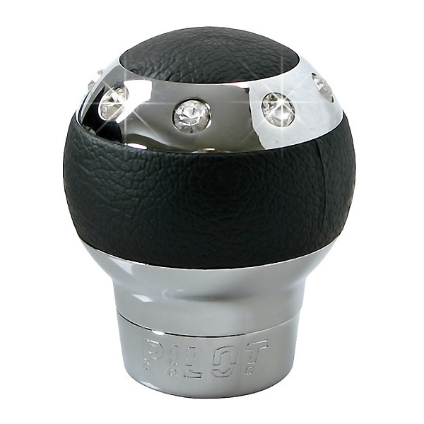 Πόμολο για λεβιέ ταχυτήτων, κατασκευασμένο από δερματίνη και αλουμίνιο. το πόμολο διαθέτει, επάνω στο στεφάνι, περιμετρικά strass. Universal εφαρμογή, ταιριάζει στα περισσότερα αυτοκίνητα με απλό μοχλό ταχυτήτων με μέγιστη διάμετρο 15 mm, αλλά και για μοχλό που διαθέτει επιλογέα ταχυτήτων με ανύψωση ή μετατόπιση (σηκωτή ή πατητή όπισθεν) και μέγιστη διάμετρο 33 mm. Στη συσκευασία περιλαμβάνεται κιτ με αντάπτορες και κλειδί άλεν για την τοποθέτηση.