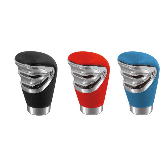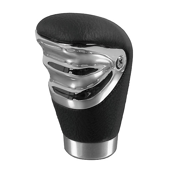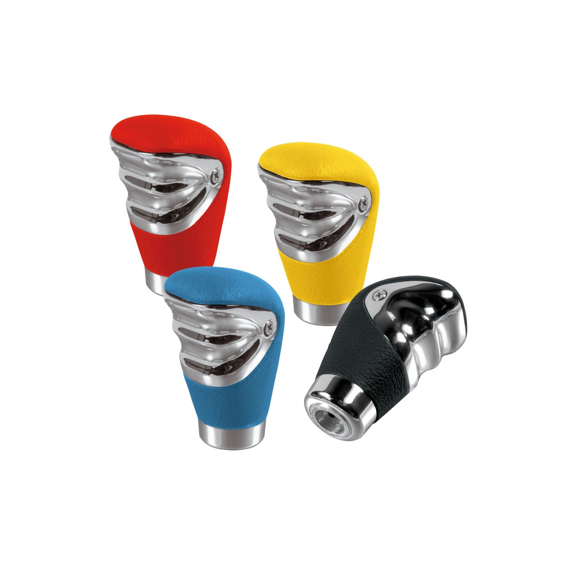 Πόμολο ταχυτήτων κατασκευασμένο από δερματίνη με λεπτομέρειες από χρωμιωμένο αλουμίνιο. Η συσκευασία περιλαμβάνει κιτ τοποθέτησης με αντάπτορες και άλεν κλειδί. Universal εφαρμογή, ταιριάζει στα περισσότερα αυτοκίνητα με απλό μοχλό ταχυτήτων με μέγιστη διάμετρο 15 mm αλλά και για μοχλό που διαθέτει επιλογέα ταχυτήτων με ανύψωση ή μετατόπιση (σηκωτή ή πατητή όπισθεν) και μέγιστη διάμετρο 30 mm.