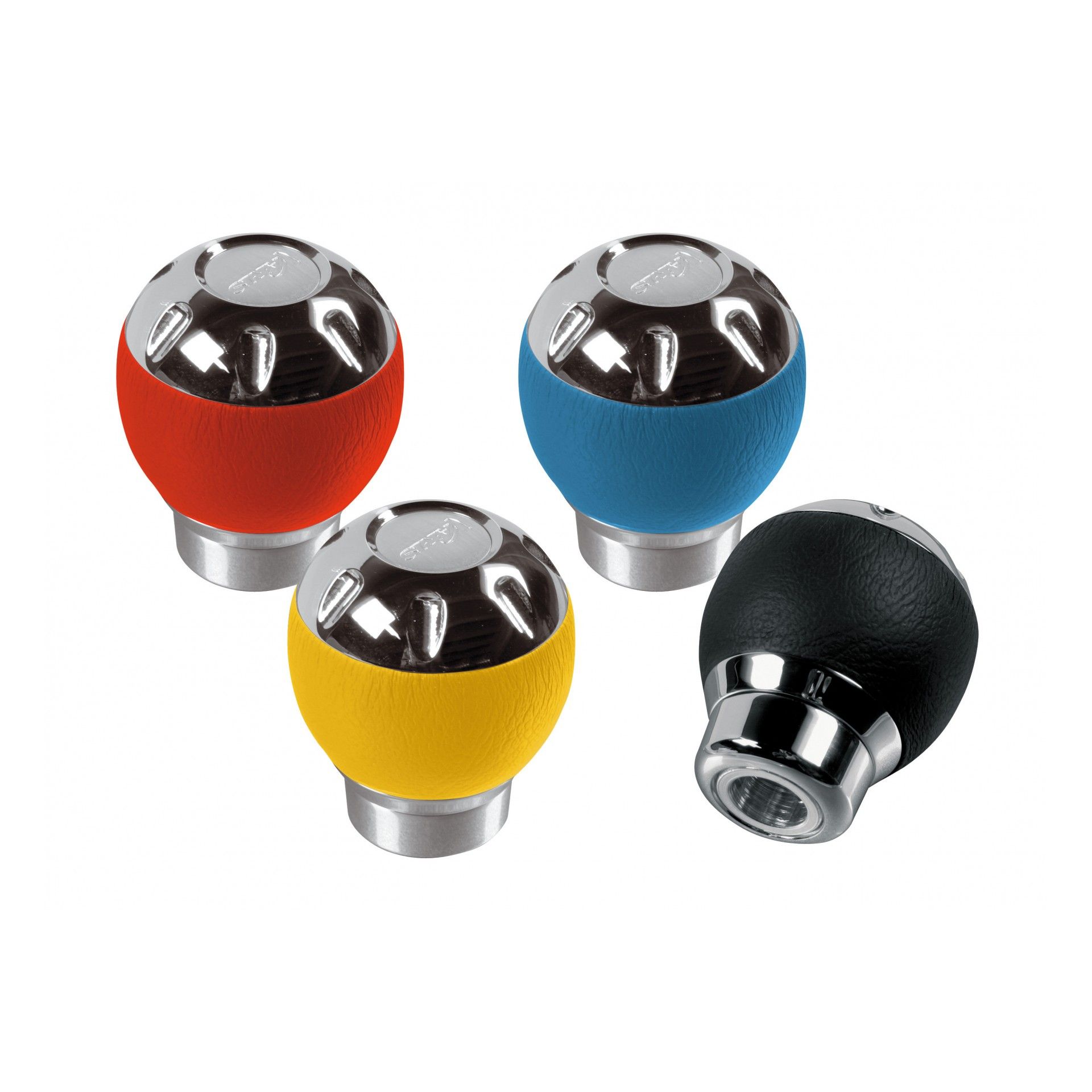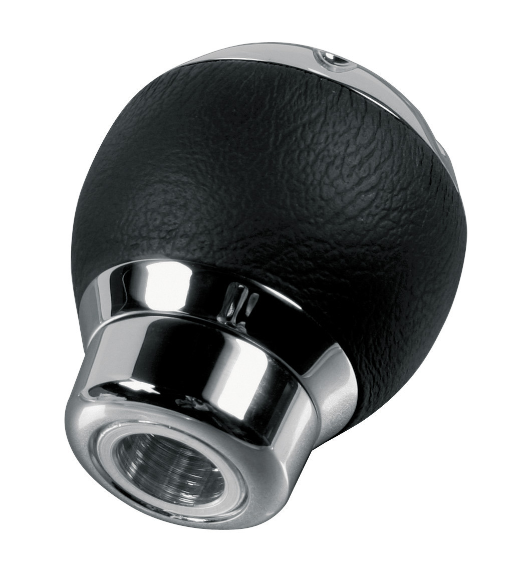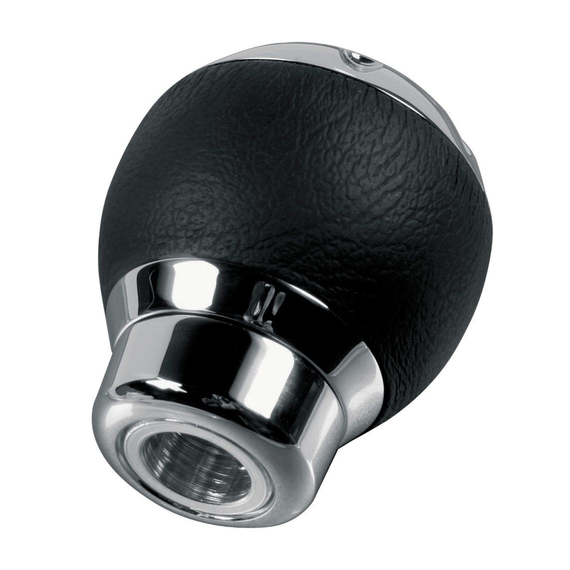 Πόμολο ταχυτήτων κατασκευασμένο από δερματίνη με λεπτομέρειες από χρωμιωμένο αλουμίνιο. Η συσκευασία περιλαμβάνει κιτ τοποθέτησης με αντάπτορες και άλεν κλειδί. Universal εφαρμογή, ταιριάζει στα περισσότερα αυτοκίνητα με απλό μοχλό ταχυτήτων με μέγιστη διάμετρο 15 mm αλλά και για μοχλό που διαθέτει επιλογέα ταχυτήτων με ανύψωση ή μετατόπιση (σηκωτή ή πατητή όπισθεν) και μέγιστη διάμετρο 33 mm.