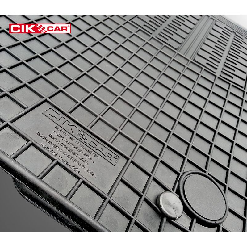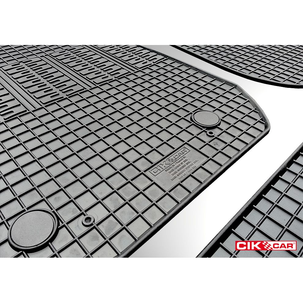 Πατάκια αυτοκινήτου από την εταιρία CIK, πολωνικής προέλευσης, σχεδιασμένα για να ταιριάζουν ακριβώς στις διαστάσεις του εκάστοτε οχήματός (μαρκέ) και κατασκευασμένα από υψηλής ποιότητας αντιχαρακτικό λάστιχο σε μαύρο χρώμα, χαρίζοντας εξαιρετική αντοχή για χρήση μακράς διάρκειας. Έχουν αντιολισθητικό πάτο με υποδοχές για κουμπώματα (αν διαθέτει το αυτοκίνητο) για καλύτερη σταθερότητα και πρόσφυση στο δάπεδο, ώστε να παραμένουν σταθερά χωρίς να μετακινούνται από τη θέση τους κατά την είσοδο/έξοδο των επιβατών. Το ανάγλυφο μοτίβο και οι ελαφρώς ανασηκωμένες άκρες τους διατηρούν το εσωτερικό της καμπίνας καθαρό, συγκρατούν όλη τη βρωμιά, σκόνη, λάσπες, υγρασία, κτλ. και κάνουν την αφαίρεση των ρύπων πολύ πιο εύκολη κατά το καθάρισμα. Είναι κατάλληλα για όλες τις εποχές, ανθεκτικά στο χρόνο και παρέχουν υψηλή προστασία. Πλένονται και καθαρίζονται πολύ εύκολα, διατηρώντας το αρχικό τους σχήμα. Εύκολη και γρήγορη τοποθέτηση.