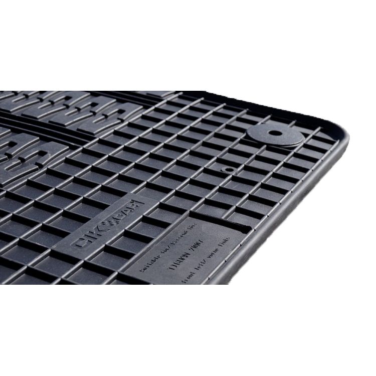 Πατάκια αυτοκινήτου από την εταιρία CIK, πολωνικής προέλευσης, σχεδιασμένα για να ταιριάζουν ακριβώς στις διαστάσεις του εκάστοτε οχήματός (μαρκέ) και κατασκευασμένα από υψηλής ποιότητας αντιχαρακτικό λάστιχο σε μαύρο χρώμα, χαρίζοντας εξαιρετική αντοχή για χρήση μακράς διάρκειας. Έχουν αντιολισθητικό πάτο με υποδοχές για κουμπώματα (αν διαθέτει το αυτοκίνητο) για καλύτερη σταθερότητα και πρόσφυση στο δάπεδο, ώστε να παραμένουν σταθερά χωρίς να μετακινούνται από τη θέση τους κατά την είσοδο/έξοδο των επιβατών. Το ανάγλυφο μοτίβο και οι ελαφρώς ανασηκωμένες άκρες τους διατηρούν το εσωτερικό της καμπίνας καθαρό, συγκρατούν όλη τη βρωμιά, σκόνη, λάσπες, υγρασία, κτλ. και κάνουν την αφαίρεση των ρύπων πολύ πιο εύκολη κατά το καθάρισμα. Είναι κατάλληλα για όλες τις εποχές, ανθεκτικά στο χρόνο και παρέχουν υψηλή προστασία. Πλένονται και καθαρίζονται πολύ εύκολα, διατηρώντας το αρχικό τους σχήμα. Εύκολη και γρήγορη τοποθέτηση.