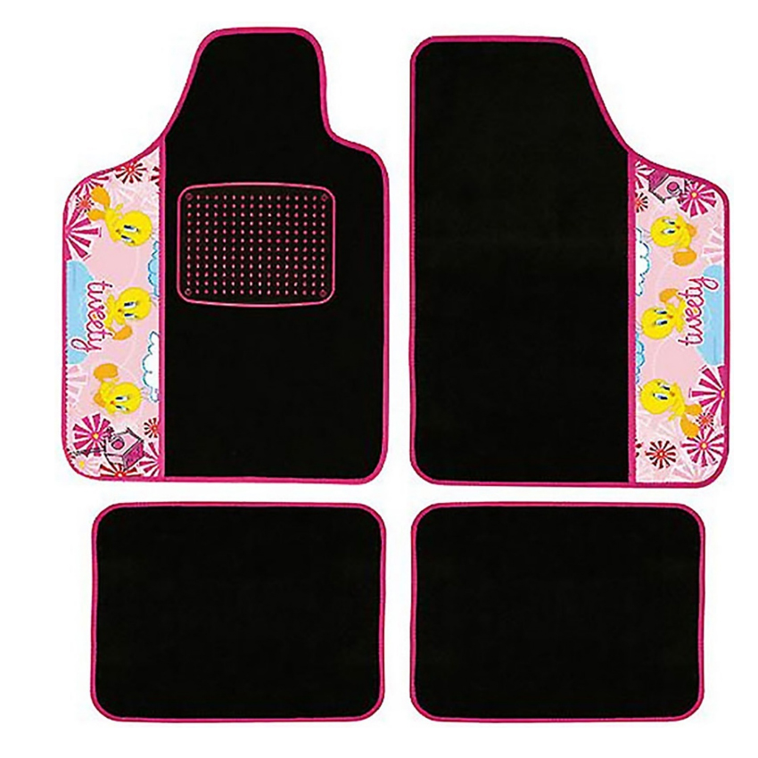 ετ 4τμχ πατάκια αυτοκινήτου Tweety από μοκέτα της εταιρείας Lampa. Τα πατάκια από μοκέτα έχουν πληθώρα χρωματικών συνδυασμών με αποτέλεσμα να μπορείτε να δώσετε το δικό σας ύφος στο εσωτερικό του αυτοκινήτου. Αρα δίνουν πιο ωραία αίσθηση αλλά χρειάζονται περισσότερη φροντίδα συγκριτικά με τα λαστιχένια.