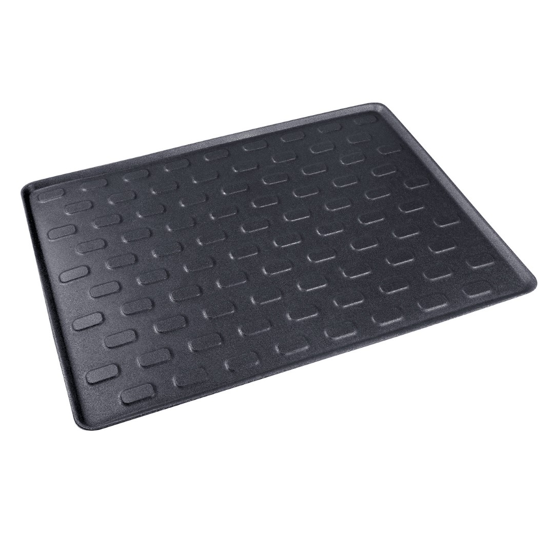 Πατάκι σκάφη πορτ μπαγκάζ με universal εφαρμογή για να ταιριάζει στον χώρο αποσκευών των περισσότερων αυτοκινήτων, κατασκευασμένο από πλαστικό (πολυαιθυλένιο PE) πάχους 3 mm σε μαύρο χρώμα με ανάγλυφα οβάλ σχήματα και αντιολισθητικό πάτο, προσφέροντας ευελιξία, υψηλή προστασία, σταθερότητα και καλύτερη πρόσφυση στο δάπεδο του πορτ μπαγκάζ. Διαθέτει περιμετρικό υπεριψωμένο χείλος για να συγκρατεί τη βρωμιά, τη σκόνη, τις λάσπες, το χιόνι, την υγρασία, κτλ. στο εσωτερικό του μέρος, χωρίς να μεταφέρονται σε άλλες επιφάνειες του οχήματος. Μπορεί να πλυθεί και να καθαριστεί εύκολα για να επαναχρησιμοποιηθεί, είναι αδιάβροχο και κατάλληλο για χρήση κατά τη διάρκεια όλων των εποχών. Ιδανικό προϊόν για εσάς που θέλετε να μεταφέρετε αντικείμενα και πράγματα, τα οποία μπορεί να λερώσουν το πορτ μπαγκάζ του οχήματός σας κατά την διάρκεια οδήγησης. Εύκολη και γρήγορη χρήση.