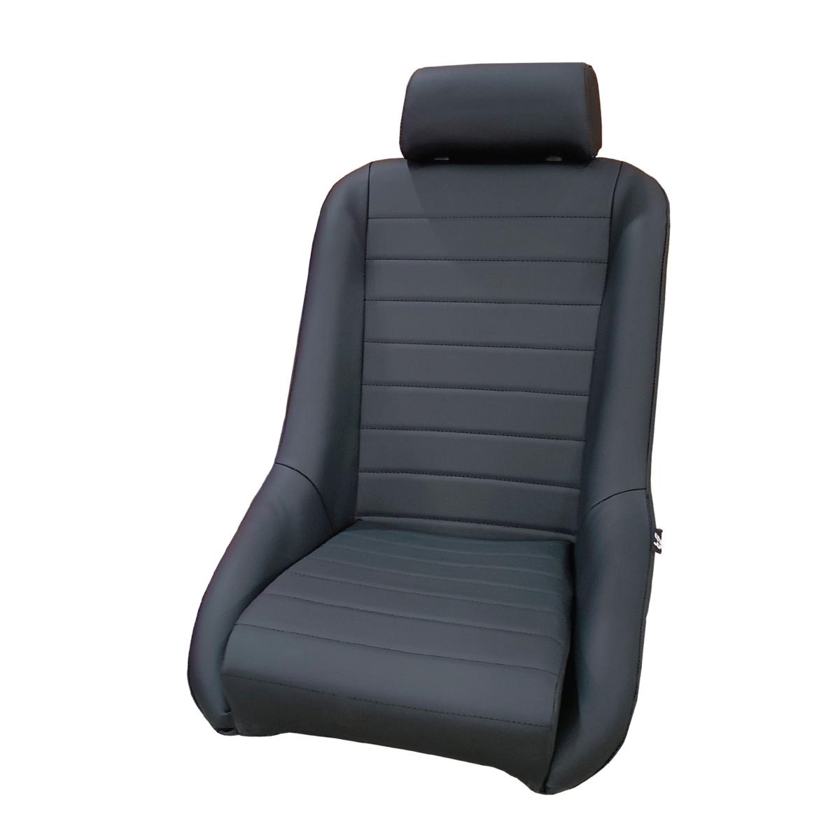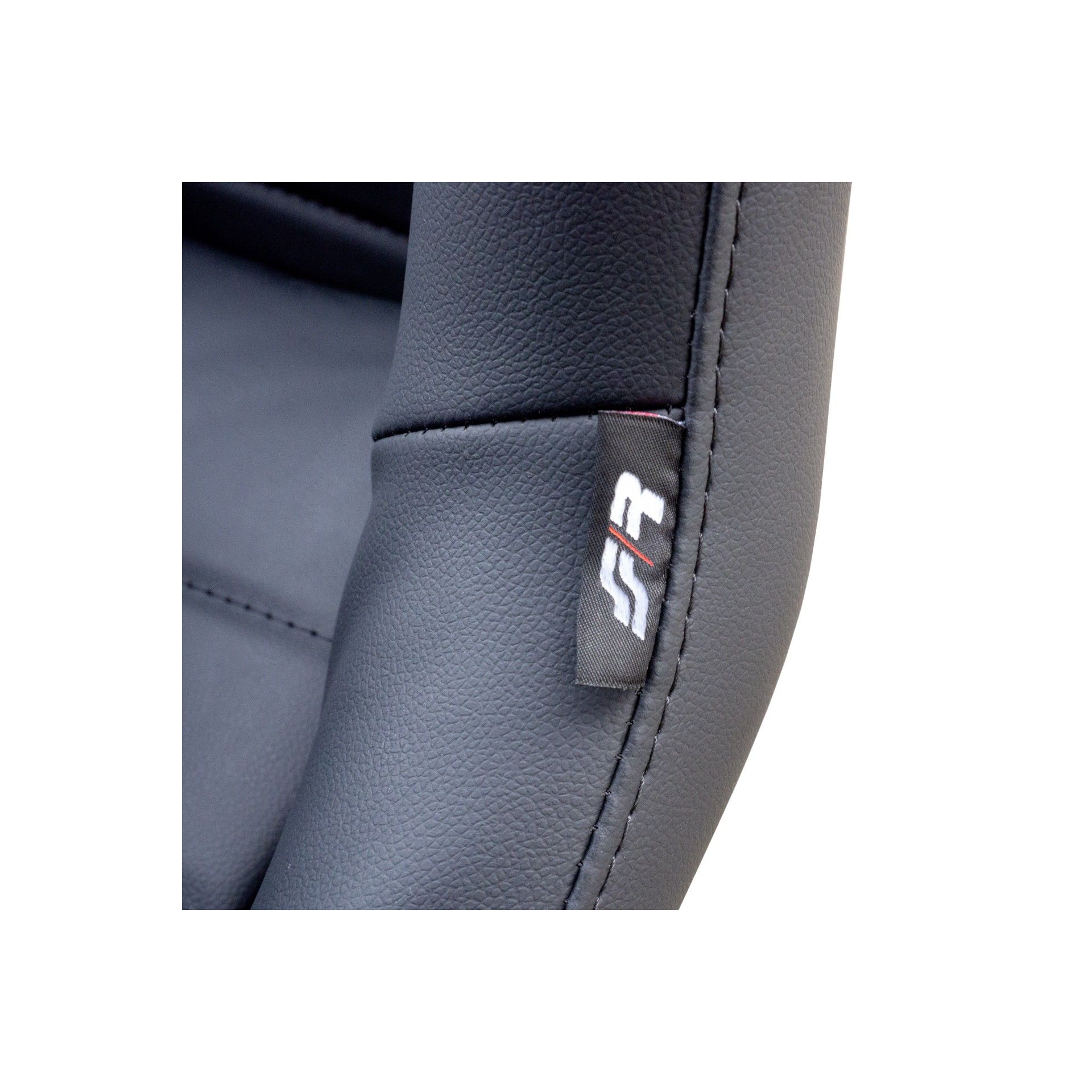 Κάθισμα universal με σταθερή πλάτη σε μαύρο χρώμα από οικολογικό δέρμα με σιδηρόδρομο, από την εταιρεία SIMONI RACING, ιταλικής προέλευσης.