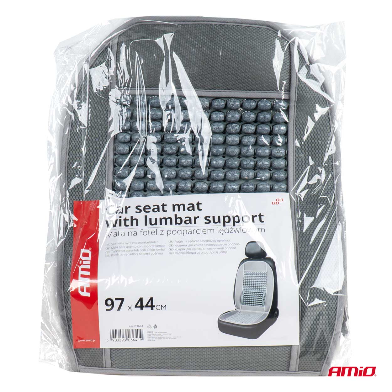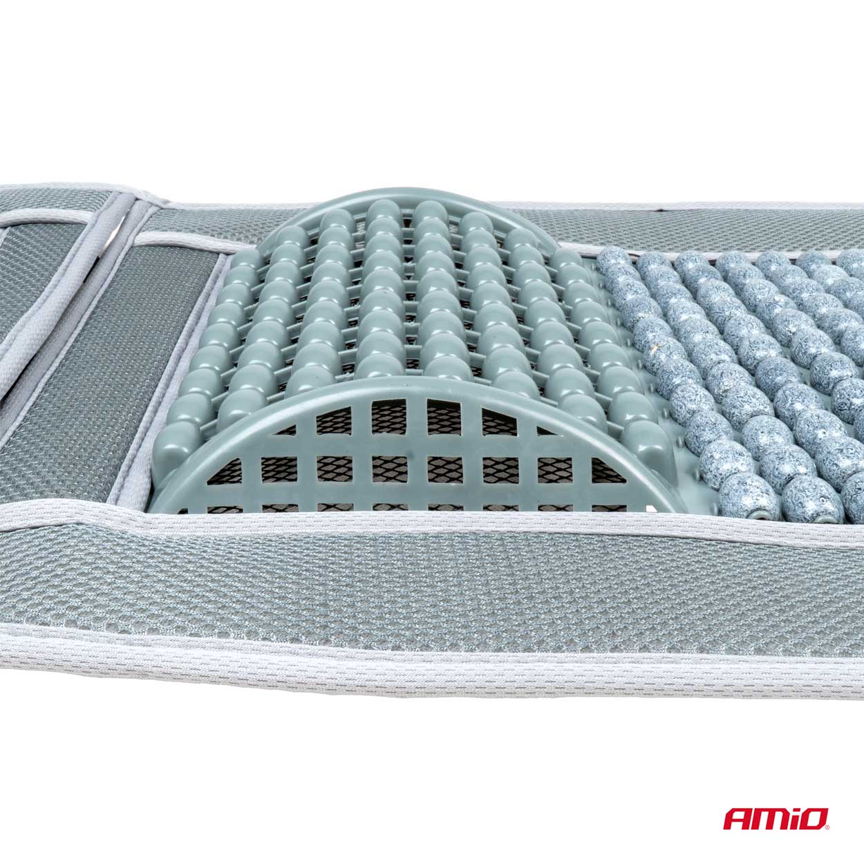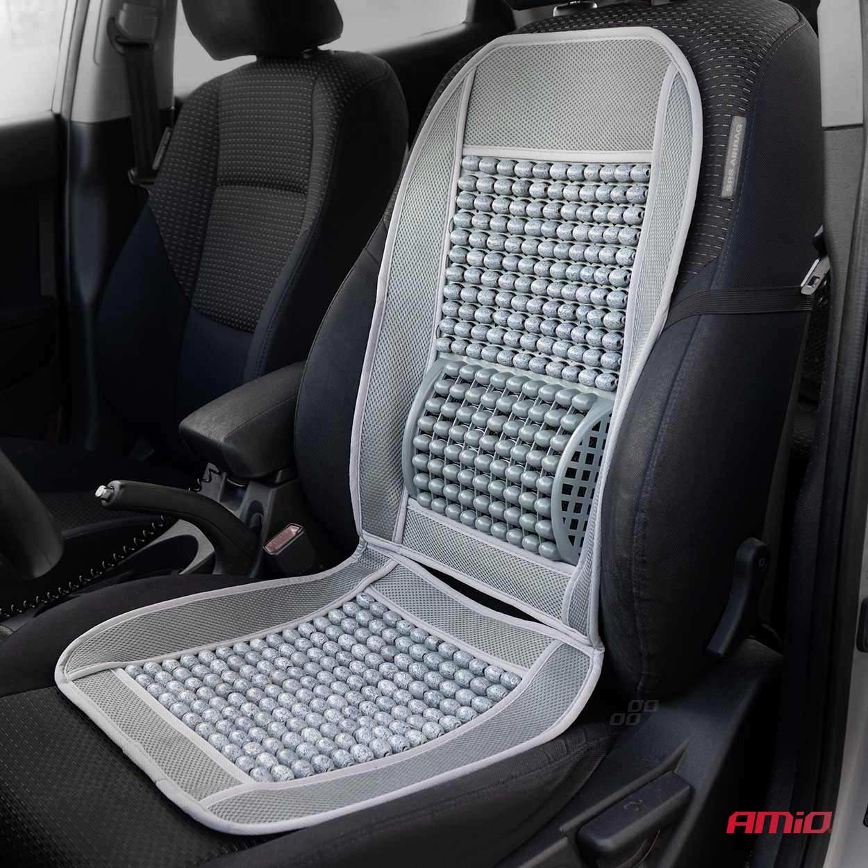 Πλατοκάθισμα με χάντρες και μαξιλάρακι μέσης από πολυεστερικό ύφασμα σε γκρι χρώμα, από την εταιρεία ΑΜΙΟ, πολωνικής προέλευσης.