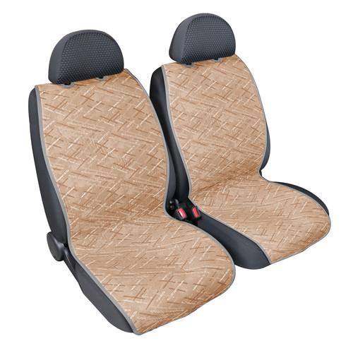 Πλατοκαθίσματα FRESCO ELEGANCE διπλής όψεως που από την μία πλευρά είναι κατασκευασμένο από ύφασμα (65% βαμβάκι/35% polyester) με γραμμικό σχέδιο και από την άλλη πλευρά ψάθα υψηλής ποιότητας και αντοχής με πυκνή πλέξη (woven paper), ιταλικής προέλευσης από την εταιρία Lampa. Ιδανική λύση για να καλύπτετε τα εμπρός καθίσματα του οχήματός σας σε περίπτωση φθοράς, σκόνης, εκδορών, ξεθώριασμα από τον ήλιο, για προστασία αλλά και για να διακοσμήσετε την καμπίνα του οχήματός σας. Αρκετά φαρδύ ώστε να προσαρμόζεται με ακρίβεια στα περισσότερα καθίσματα (φάρδος 50 cm). Tα πλατοκαθίσματα της σειράς FRESCO ELEGANCE διαθέτουν ειδικό πιάσιμο στήριξης στο προσκέφαλο των καθισμάτων για εύκολη τοποθέτηση και σταθερή εφαρμογή. Είτε χρησιμοποιήσετε την μπροστινή πλευρά του πλατοκαθίσματος, είτε την πίσω τα υφάσματα και οι ίνες από τις οποίες κατασκευάζονται, επιτρέπουν την ανακύκλωση του αέρα ανάμεσα στο σώμα και το κάθισμα, αποτρέποντας την εφίδρωση. Κατάλληλο για οχήματα που διαθέτουν πλευρικούς αερόσακους (airbags). Ιδανικά για όλες τις εποχές (δροσερό το καλοκαίρι, ζεστό τον χειμώνα).