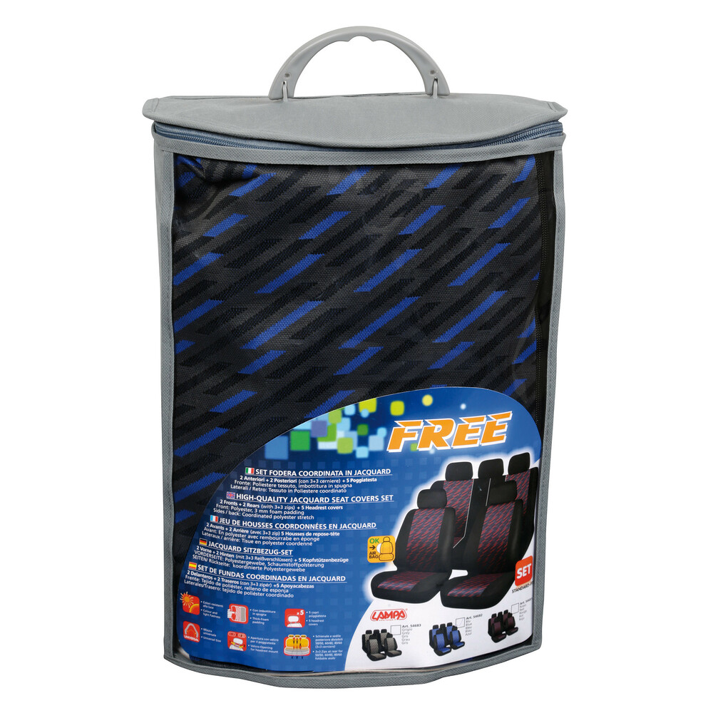Καλύμματα καθισμάτων αυτοκινήτουτης σειράς FREE από την εταιρία LAMPA, ιταλικής προελεύσεως, κατασκευασμένα από πολυεστέρα (polyester) με επένδυση από μαλακό αφρώδες υλικό.