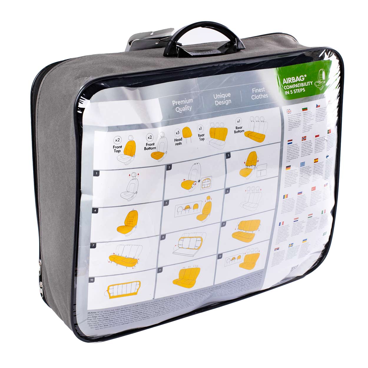 Ένα προϊόν κατασκευασμένο από υφάσματα ταπετσαρίας υψηλής ποιότητας. Ο συνδυασμός των καλύτερων υλικών και της υψηλής προσοχής στη λεπτομέρεια κατά την παραγωγή εξασφαλίζει μια αποκλειστική εμφάνιση και εξαιρετική ανθεκτικότητα, καθώς και εξαιρετική προστασία των καθισμάτων από βρωμιά και τριβές.