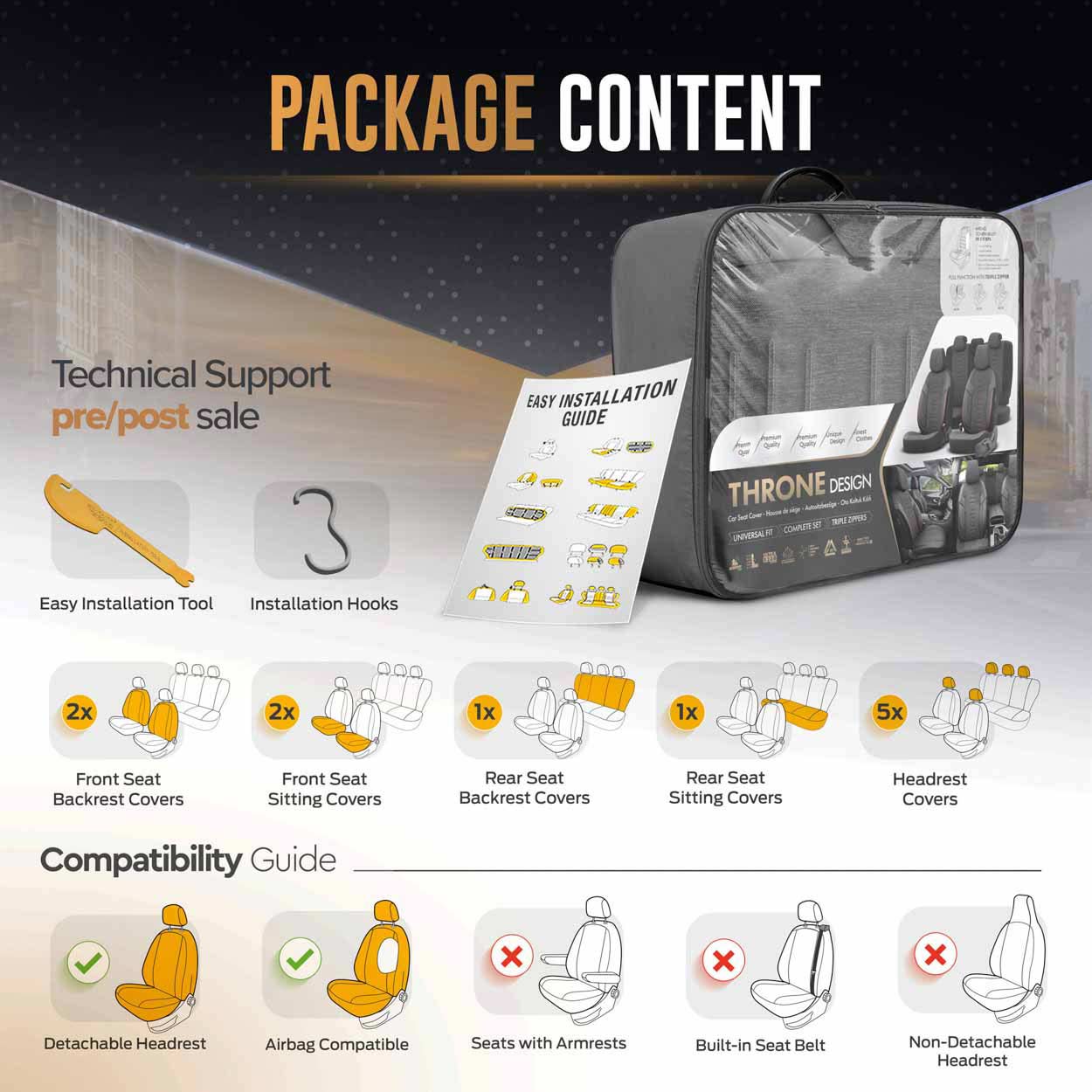 Τα καλύμματα δεν έχουν εγκοπές για ζώνες ή πίσω προσκέφαλα λόγω της προβλεπόμενης χρήσης τους για διαφορετικά μοντέλα αυτοκινήτων.