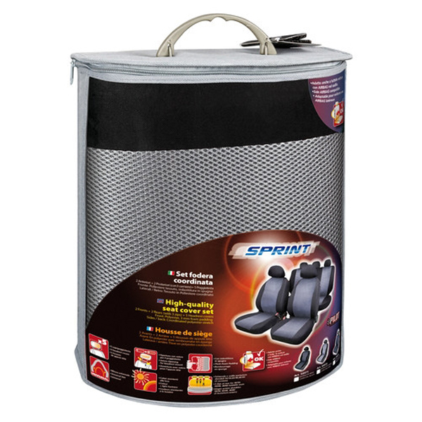 ΚΑΛΥΜΜΑΤΑ ΣΕΤ SPRINT ΓΚΡΙ2 μέτωπα, 2 οπίσθια (με 3 φερμουάρ), 5 καλύμματα προσκέφαλου. Ταιριάζει στα περισσότερα αυτοκίνητα με στάνταρ καθίσματα, με και χωρίς αερόσακο. πολυεστέρας.
