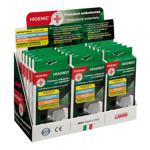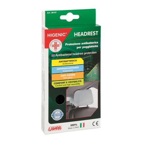Προστατευτικό κάλυμμα για το προσκέφαλο του καθίσματος HIGENIC ιταλικής κατασκευής και προέλευσης, από πολυαμίδιο, ένα είδος ελαστικού υλικού υψηλής αντοχής, το οποίο έπειτα από ειδική επεξεργασία με βάση το ασήμι ενισχύει την αντιβακτηριδιακή του ιδιότητα.