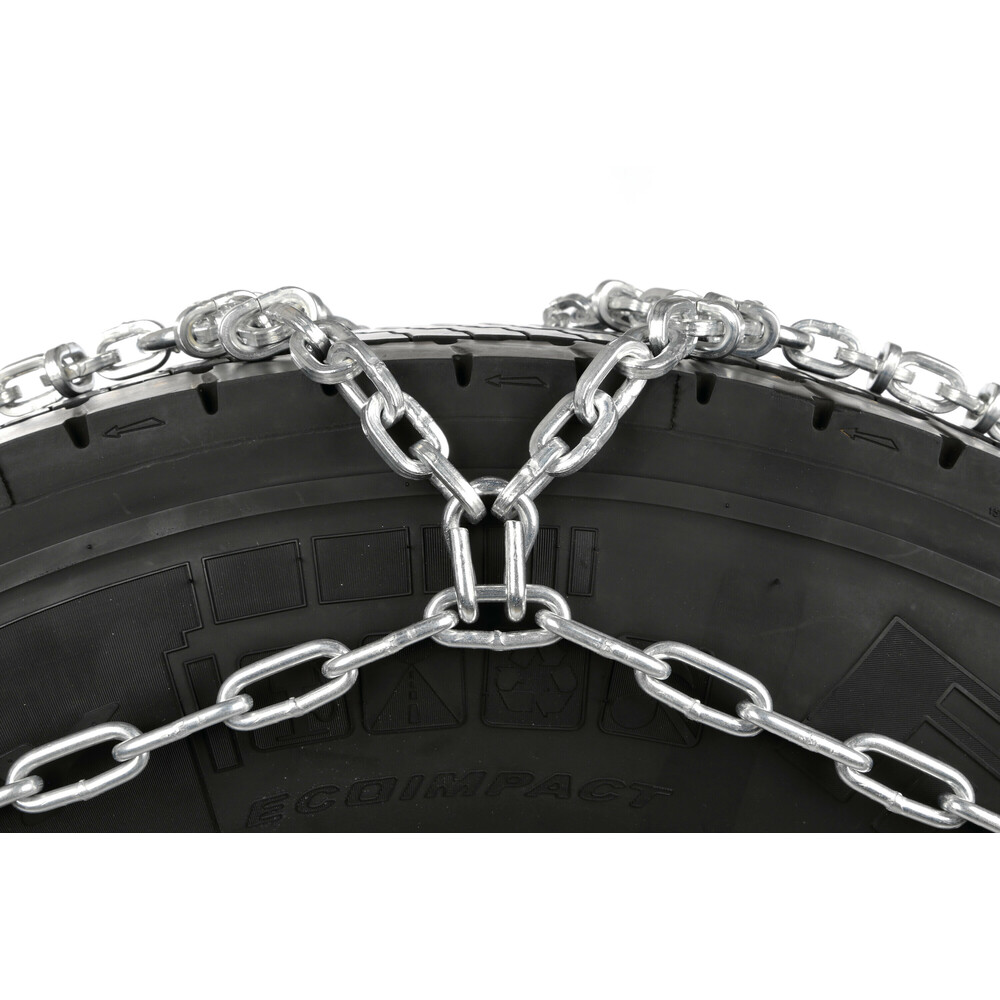 Αλυσίδες χιονιού για φορτηγά βαρέως τύπου της σειράς CARGO PLUS PROFESSIONAL EVO από την εταιρία LAMPA, ιταλικής προέλευσης, κατασκευασμένες από ισχυρό ατσάλι μαγγανίου (σκληρυμένος γαλβανιζέ χάλυβας), πάχους 5,5 mm. Είναι σχεδιασμένες με συμμετρικό μοτίβο σε σχήμα "διαμάντι" (diammond pattern), συνδέσεις διπλής όψης σε σχήμα D και πρόσθετους ενισχυτικούς συνδέσμους (cross links) για αύξηση της πρόσφυσης στο οδόστρωμα και μείωση της φθοράς. Κατάλληλο αξεσουάρ φορτηγού, που παρέχει προστασία κατά την οδήγηση σε συνθήκες που υπάρχει χιόνι ή πάγος.