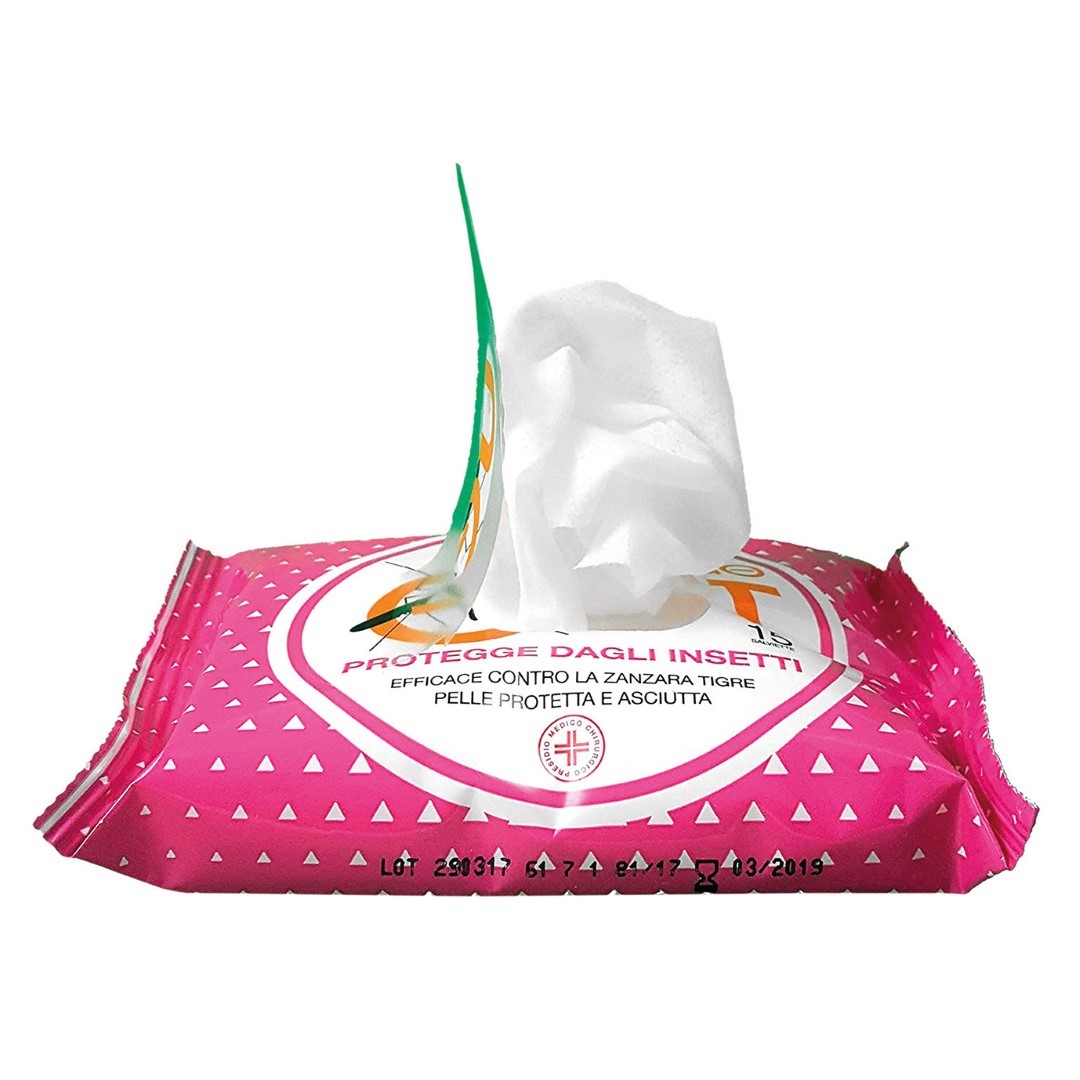 Συσκευασία που εμπεριέχει 15 υγρά μαντηλάκια εντομοαπωθητικής δράσης με citronella TZYGO OUT, ιταλικής προελεύσεως, κατάλληλα για την προστασία και την πρόληψη από τσιμπήματα εντόμων, όπως κουνούπια (και κουνούπια τίγρης), μύγες, τσιμπούρια, σκνίπες, κτλ. Ιδανικό προϊόν για να τα έχετε συνεχώς μαζί σας για άμεση πρόσβαση, μεταφέροντας τα μέσα στη τσάντα, το αυτοκίνητο, στην παραλία, την εξοχή, κτλ. Εύκολη και γρήγορη χρήση.