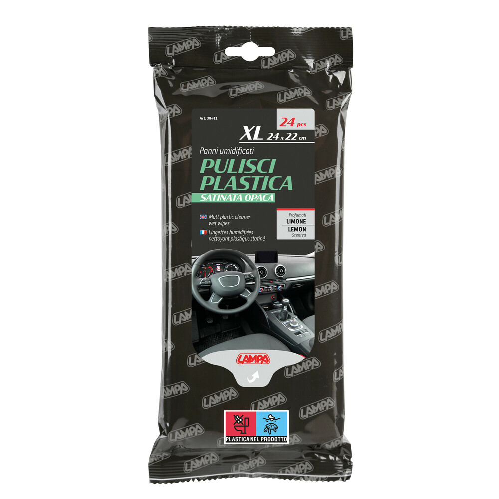 Υγρά μαντηλάκια καθαρισμού πλαστικών επιφανειών με ματ φινίρισμα από την εταιρεία LAMPA, ιταλικής προέλευσης.