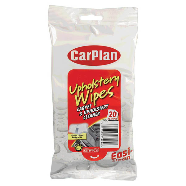 Υγρά μαντηλάκια καθαρισμού για τη ταπετσαρία, της εταιρίας Carplan, αγγλικής προέλευσης. Είναι σχεδιασμένα ειδικά για να καθαρίζουν καθημερινούς λεκέδες, βρωμιά, σκόνη από ταπετσαρίες, μοκέτες, χαλιά ,υφάσματα κ.α. Η προηγμένη σύνθεσή τους εξαλείφουν τις οσμές και καθαρίζουν την βρωμιά που παγιδεύεται στις ίνες του υφάσματος. Η εύχρηστη συσκευασία βοηθάει στην αποθήκευση του προιόντος στο ντουλαπάκι του αυτοκινήτου για άμεση χρήση ανά πάσα ώρα και στιγμή. Τα μαντηλάκια καθαρισμού Upholstery Wipes έχουν διακριτικό άρωμα φρεσκάδας φρεσκοπλυμένου λινού υφάσματος.