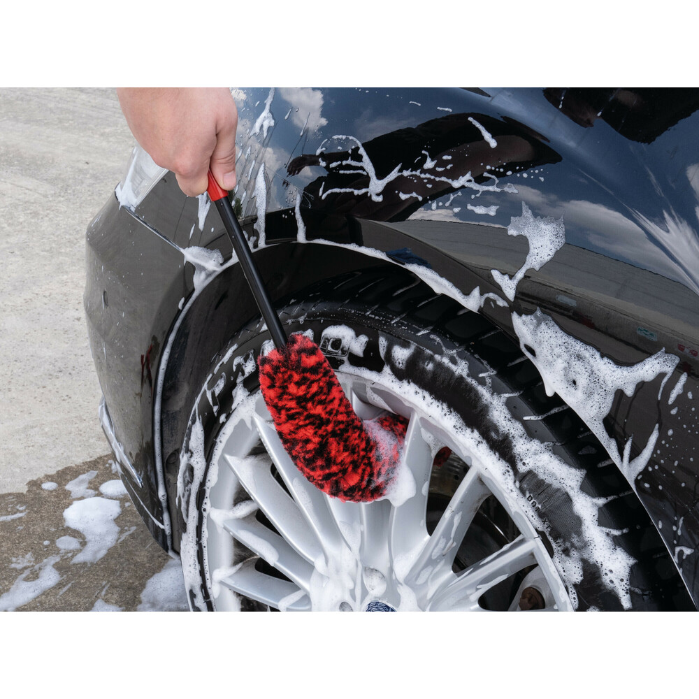 Βούρτσα κατασκευασμένη από στιβαρή αλλά μαλακή αντιχαρακτική μικροΐνα, σχεδιασμένη για τον καθαρισμό ζαντών.